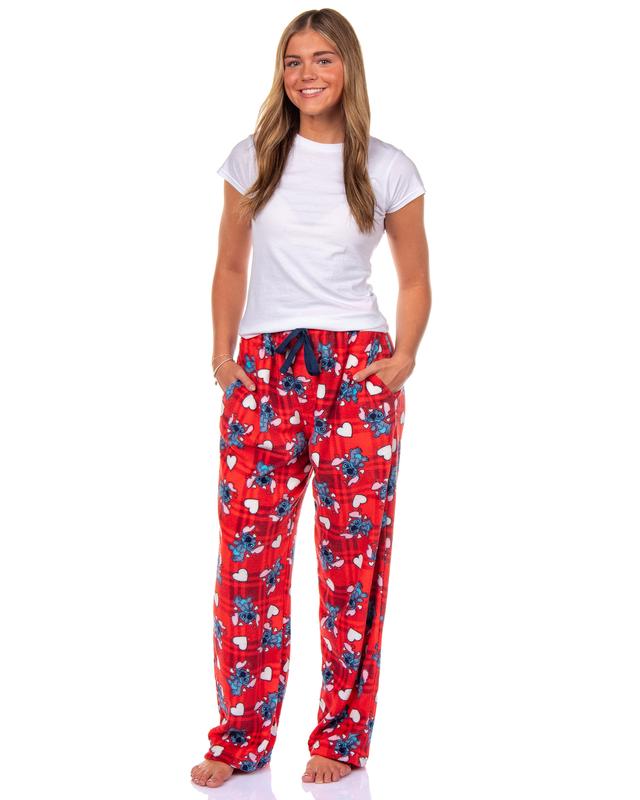 With two side pockets to keep your essentials close and a convenient open fly, these pajama pants blend style with functionality. Whether you're a devoted Lilo & Stitch fan or love cute and cozy loungewear, this sleepwear is an excellent addition to your collection. Made for comfort and built to last, these pajama pants are ready to keep you warm and stylish night after night. Soft & Cozy Fleece Comfort: Made from 100% polyester fleece, these pajama pants offer a warm and ultra-soft feel, perfect for lounging or sleeping. The plush fabric wraps you in comfort, making them a must-have for chilly nights or lazy mornings. Adorable Stitch Lovestruck Design: Featuring Stitch Experiment 626, surrounded by playful hearts on a bold red background, these sleep pants bring a fun and lighthearted touch to your loungewear. Whether you're a longtime Stitch fan or love cute and colorful designs, these pants are sure to stand out. Practical & Comfortable Fit: These pajama pants have an elastic waistband and an adjustable drawstring, allowing you to customize the fit for all-day comfort. The straight-leg silhouette provides a relaxed feel, ensuring easy movement, whether relaxing at home or getting ready for bed. Convenient Features for Everyday Wear: These pajama pants have two deep side-seam pockets, which are handy for small essentials like your phone, remote, or snacks. The functional open fly adds an extra touch of ease. Easy to Care For: These fleece pajama pants are machine washable, making them simple to maintain. The durable polyester fabric holds its softness and vibrant print wash after wash so that you can enjoy long-lasting comfort and style.