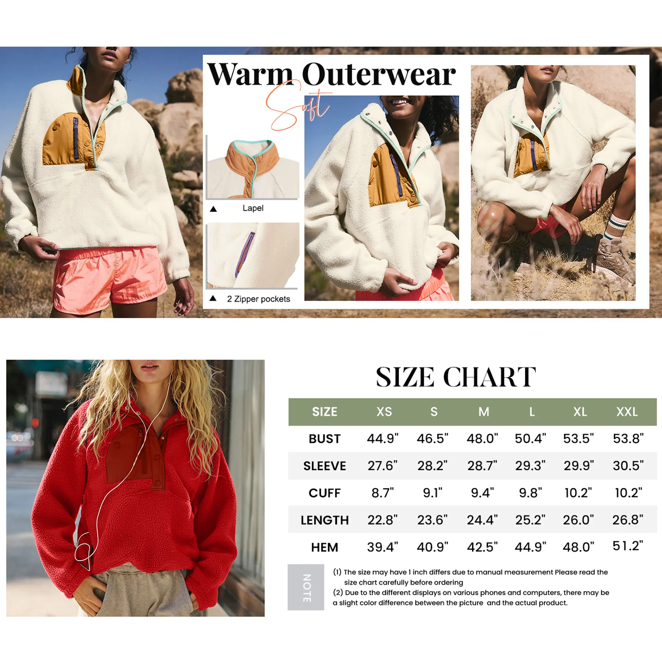 ·Machine washable, do not bleach, hang to dry, enjoy cozy and style with this women black white blue red yellow fluffy pullover fleece jacket.