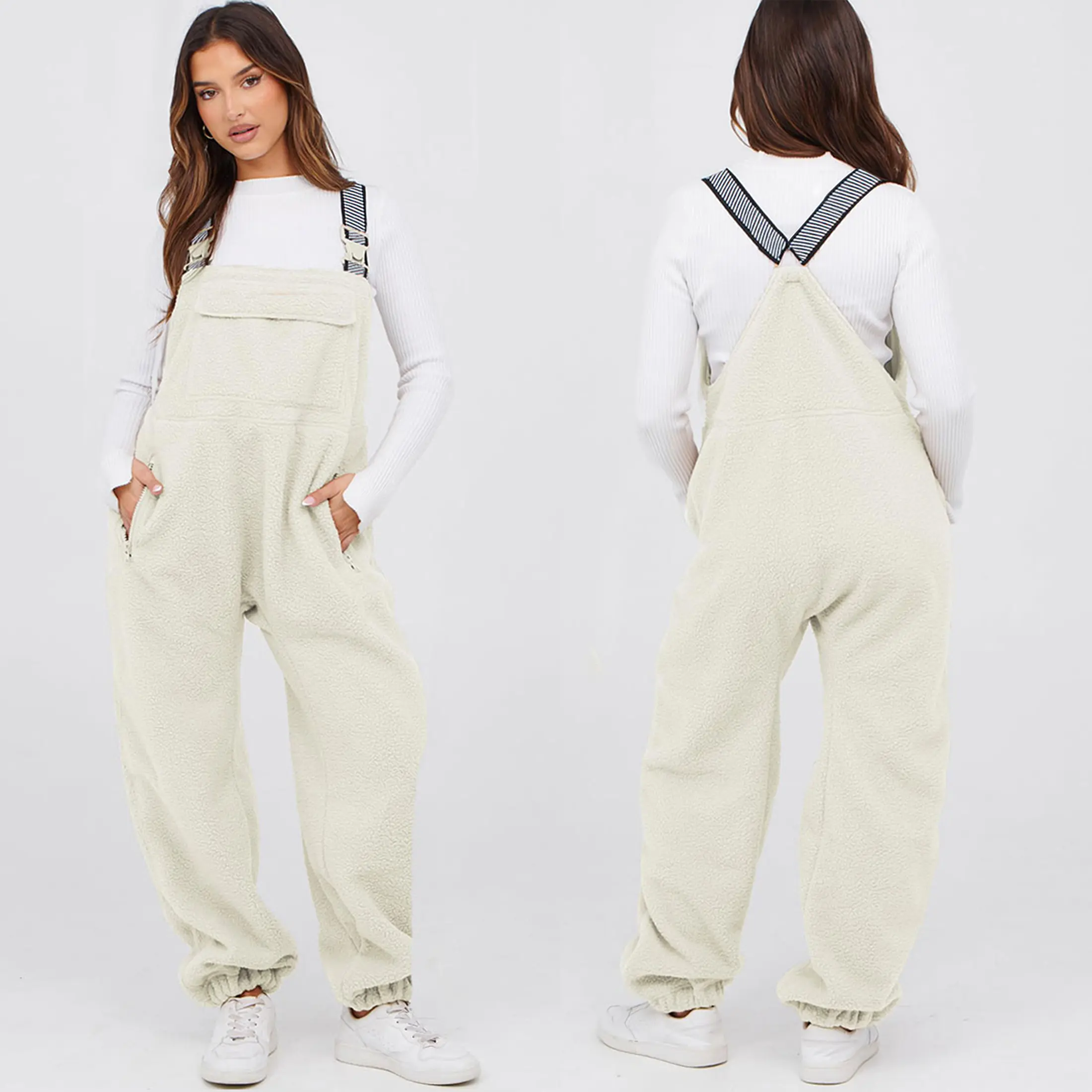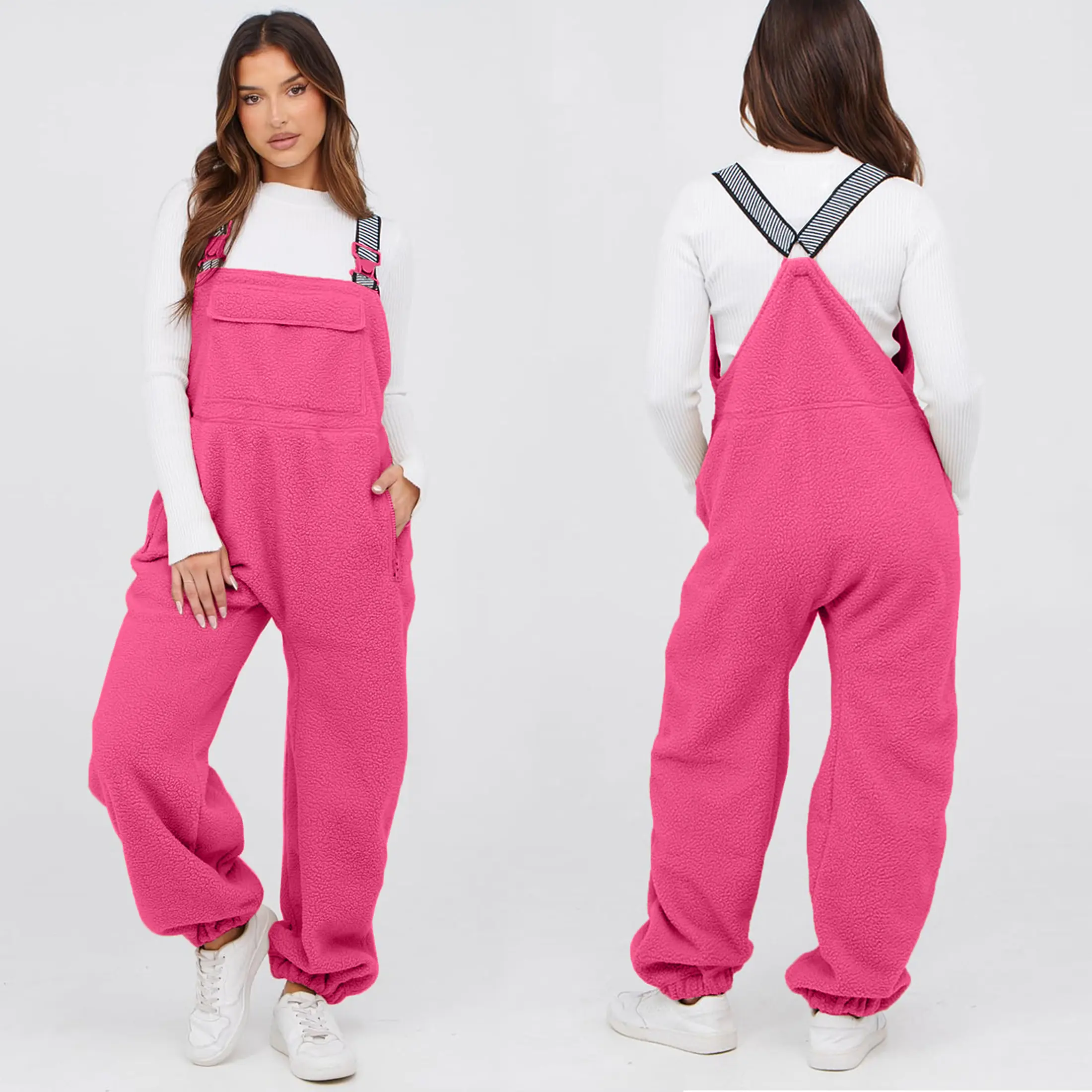 YeeZaa Fleece Sherpa Overall Fuzzy Loose Fit Bib Pants