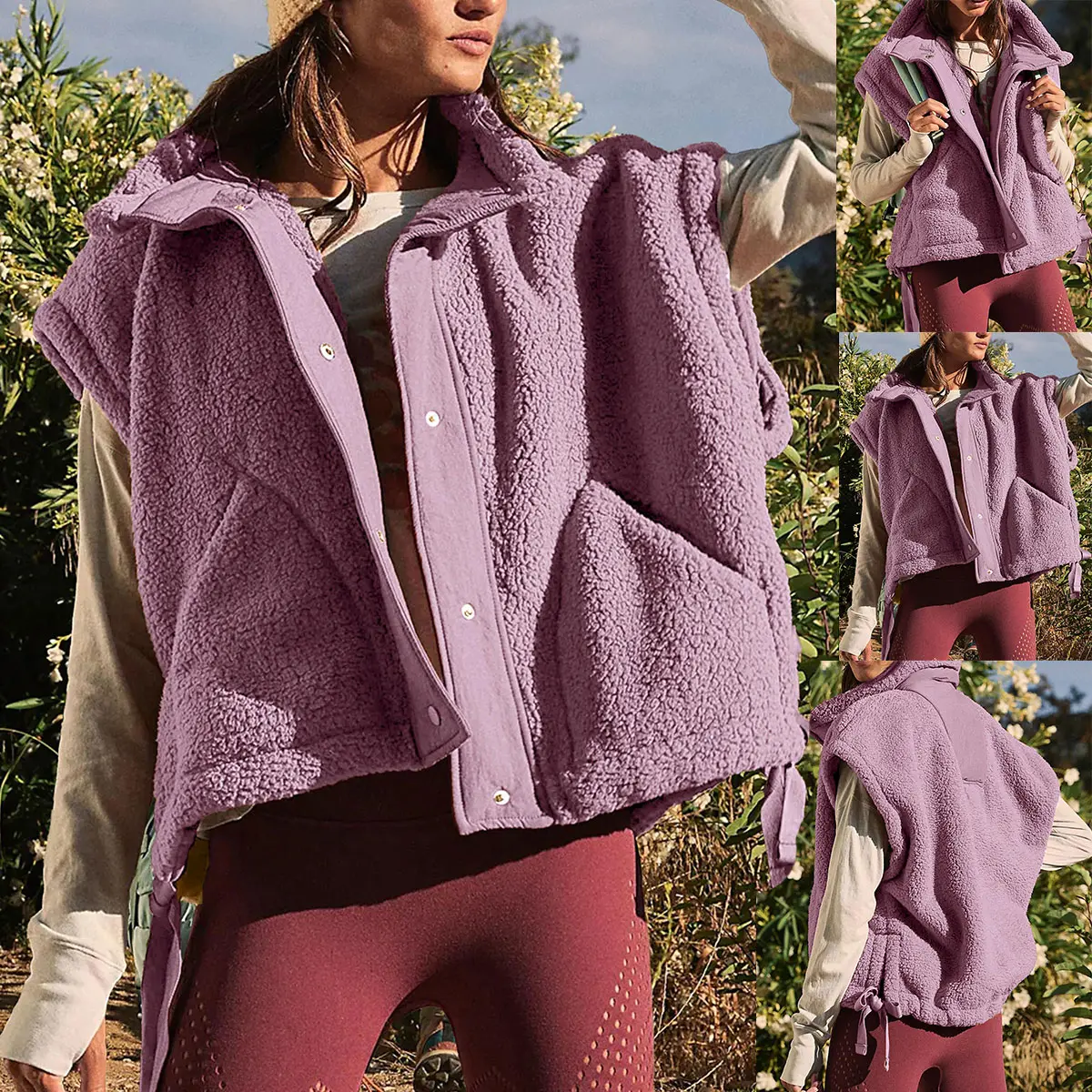 Designed with a boxy fit, this fleece vest offers a relaxed and easy-going silhouette that allows for freedom of movement. Whether you’re out for a stroll or running errands, it won’t restrict your comfort or style. Perfect for women who love a laid-back, comfortable vibe!