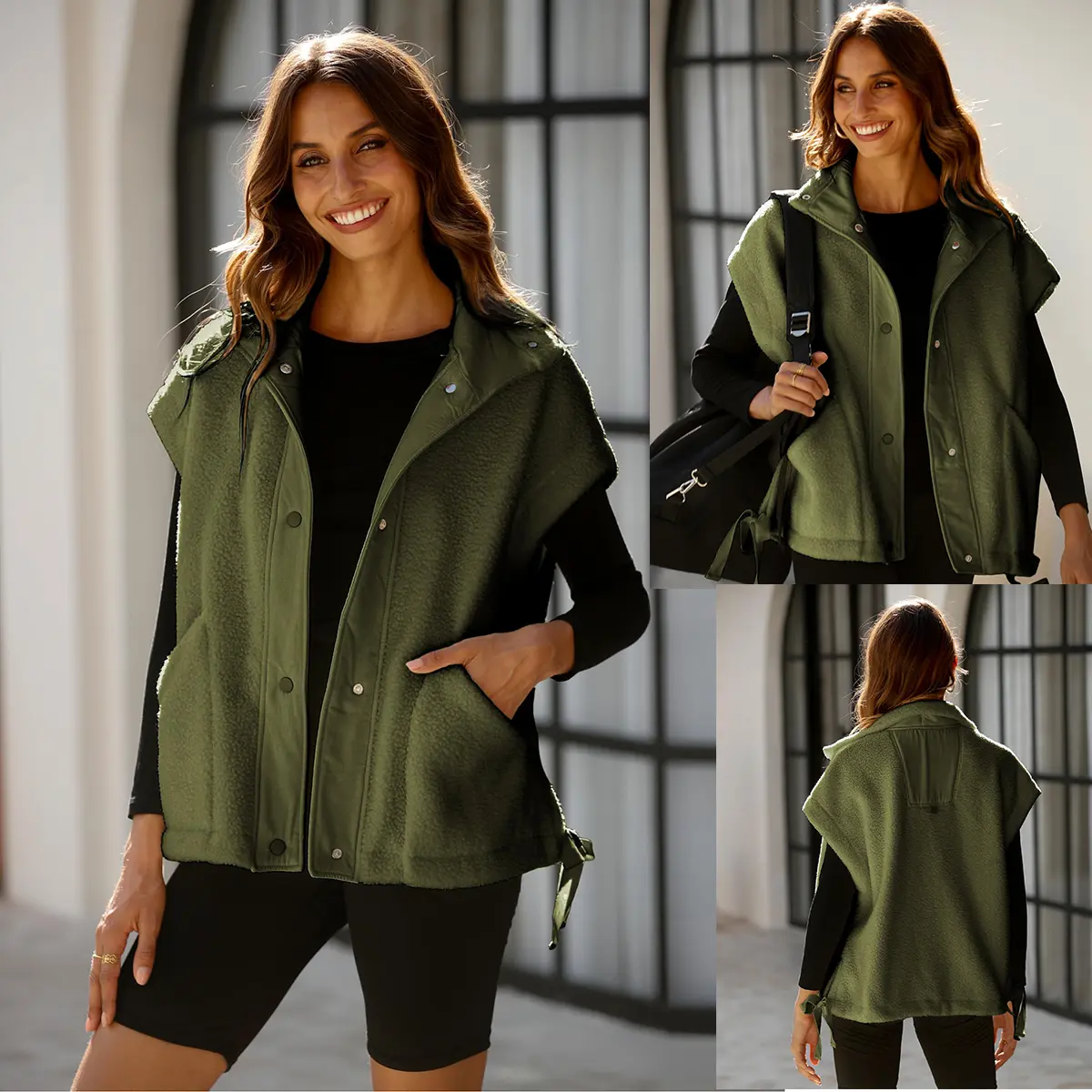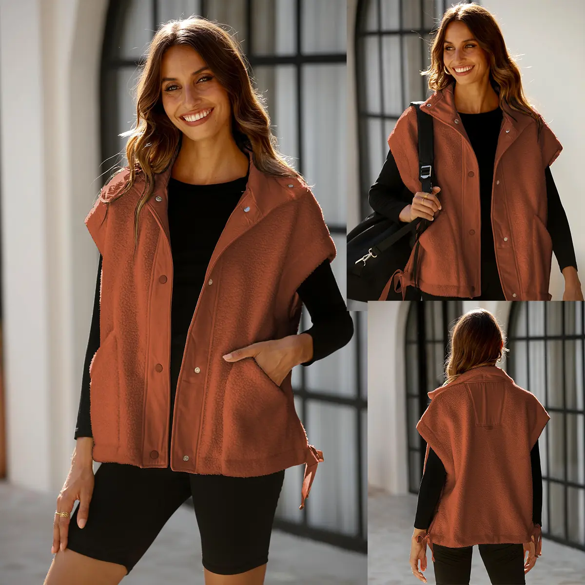 Made of cozy sherpa fabric, this oversized vest keeps you warm on chilly days. 🌨️