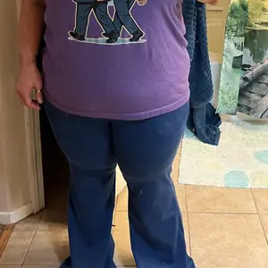 Color: bleach blue wash jeans. Comfy but RETURNING- the color is as bad as the fit for my body type, I’m 210 lbs & 5’. Pics b/c I didn’t see any photos or videos of a short size 14-16. The jeans accentuated my pooch and thighs, petite length ok w/ shoes. My yogas never did me this dirty.