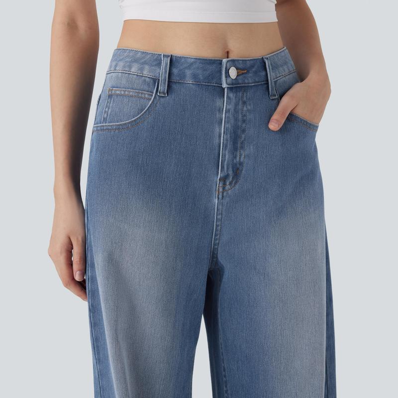 Halara Flex Mid Rise Washed Stretchy Knit Casual Baggy Jeans with Pockets
