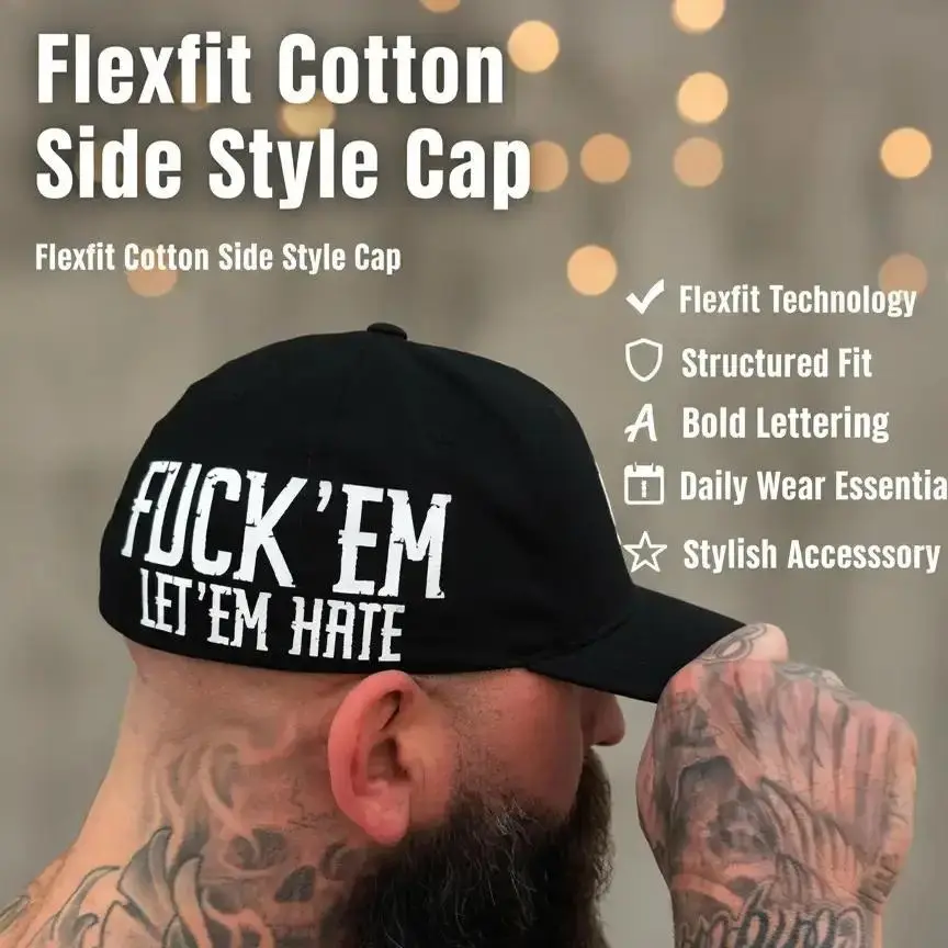 Confidence doesn’t need permission. The 'LET EM HATE' Flexfit Cotton Side Style Hat is for those who show up unapologetically. With a clean black base and bold white text, it blends modern streetwear with everyday comfort. The fitted Flexfit design ensures a secure, natural feel, while the structured shape keeps your look sharp.