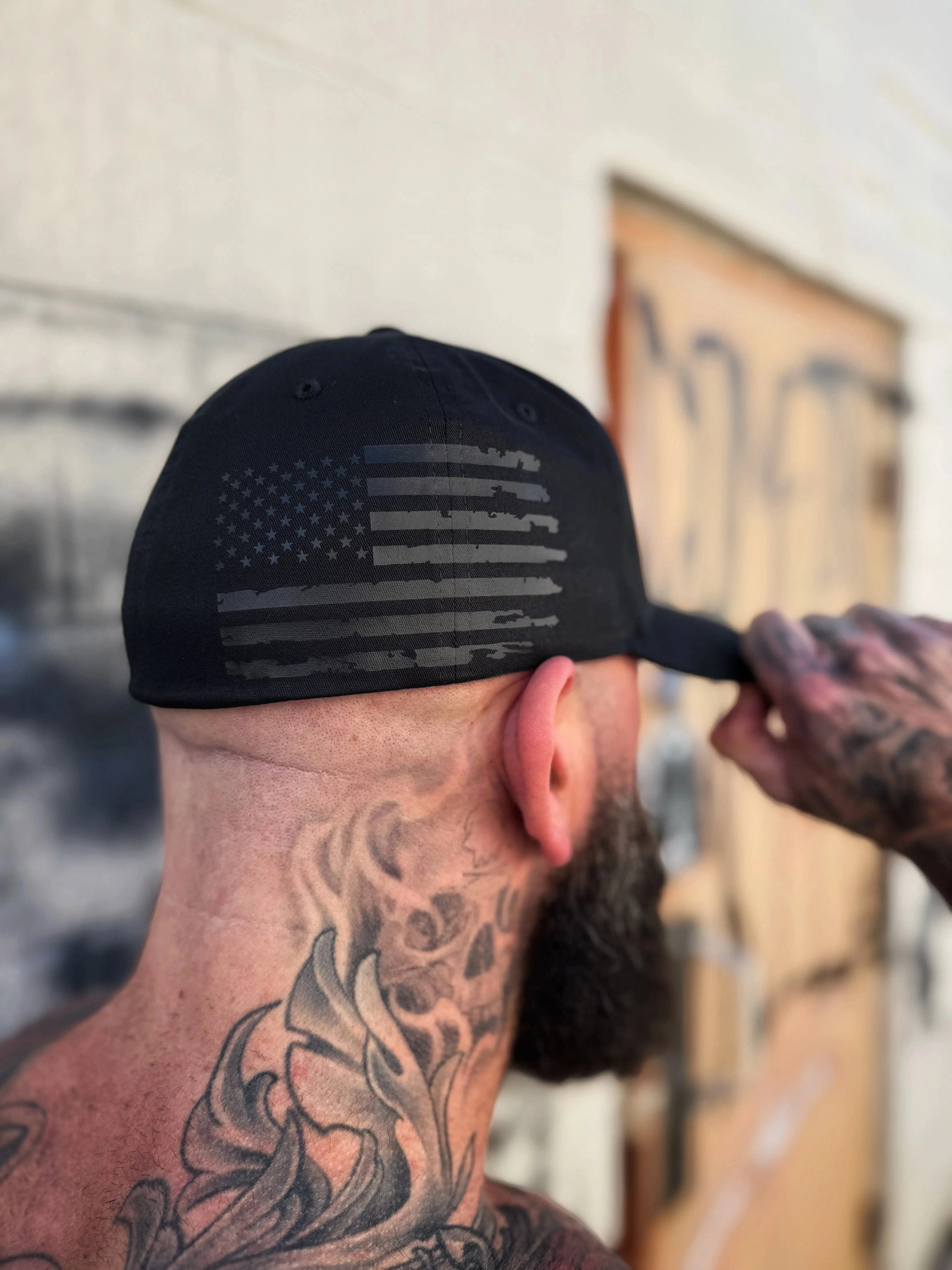 Pride doesn’t always have to be loud. This hat features a clean black-on-black USA flag detail, offering a refined patriotic look. It's designed for those who carry their identity with confidence and subtle strength. The hat is built with Flexfit comfort and a structured silhouette, ensuring it stays comfortable and moves with you.