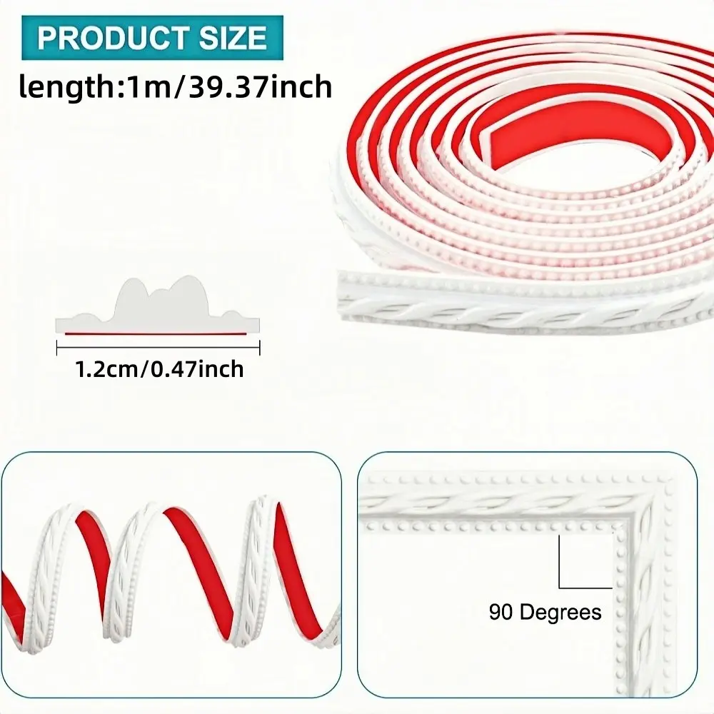 1 Meter/39.37 Inch Flexible Molded Decorative Wall Decoration, Self-adhesive Decorative Strip, Vinyl Frame Decorative Line, Peel and Paste Molded Ceiling Decoration, Suitable for Home Decoration