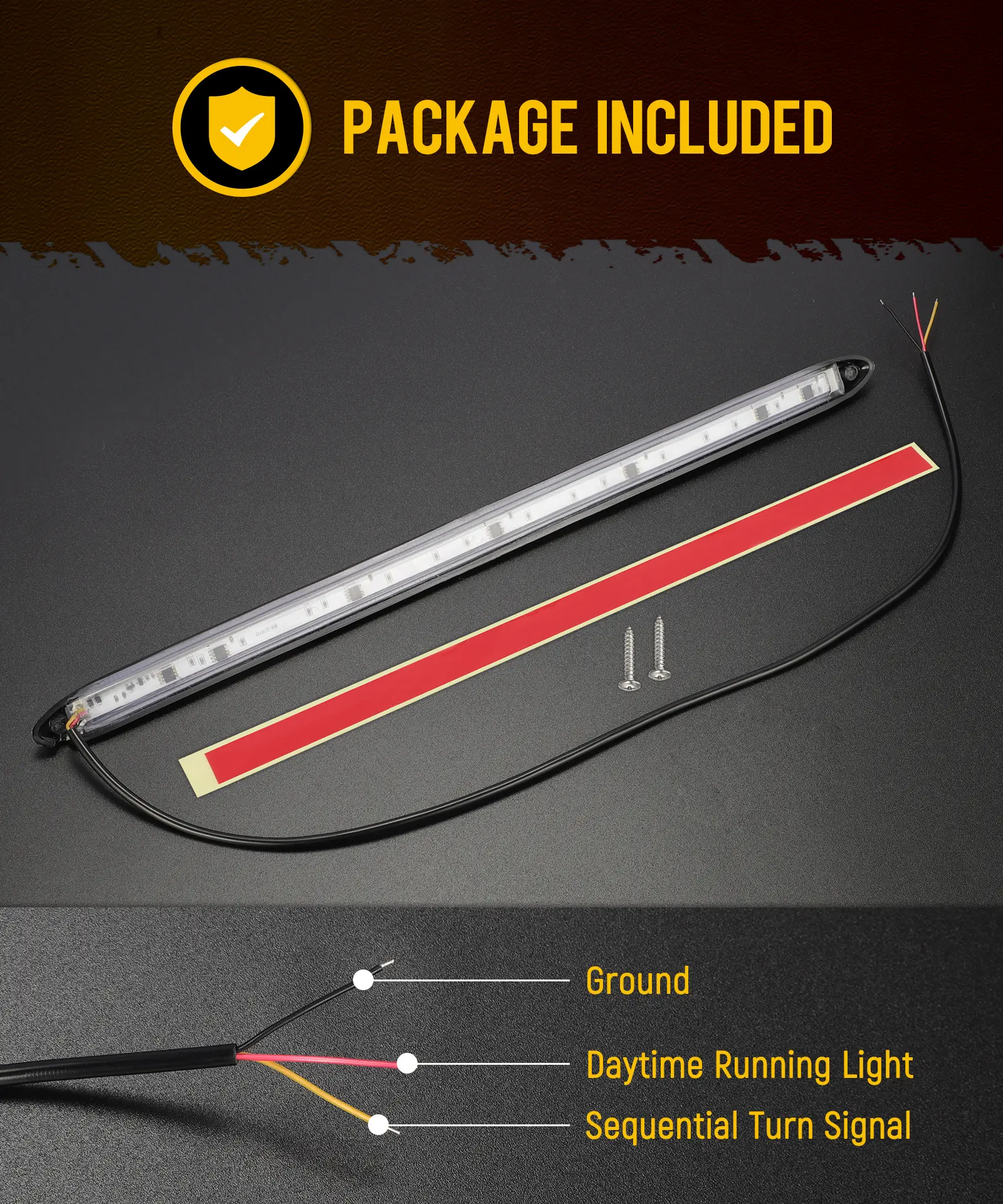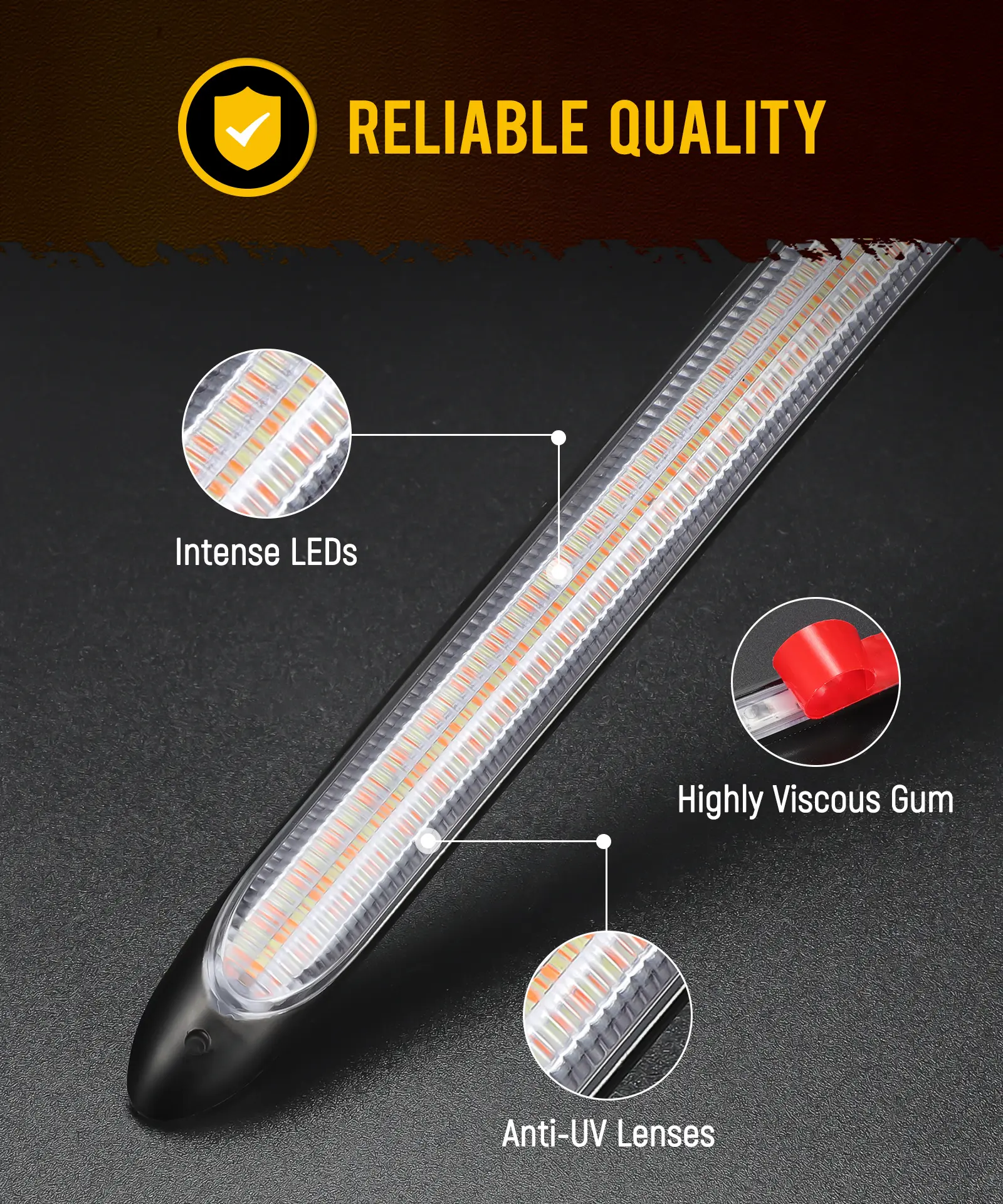 💡 Key Features - Includes 2 pieces of flexible LED strips.- Sequential white turn signals for clarity.- Yellow LED lights for added visibility.- Waterproof design for durability.- Easy installation on most vehicles.