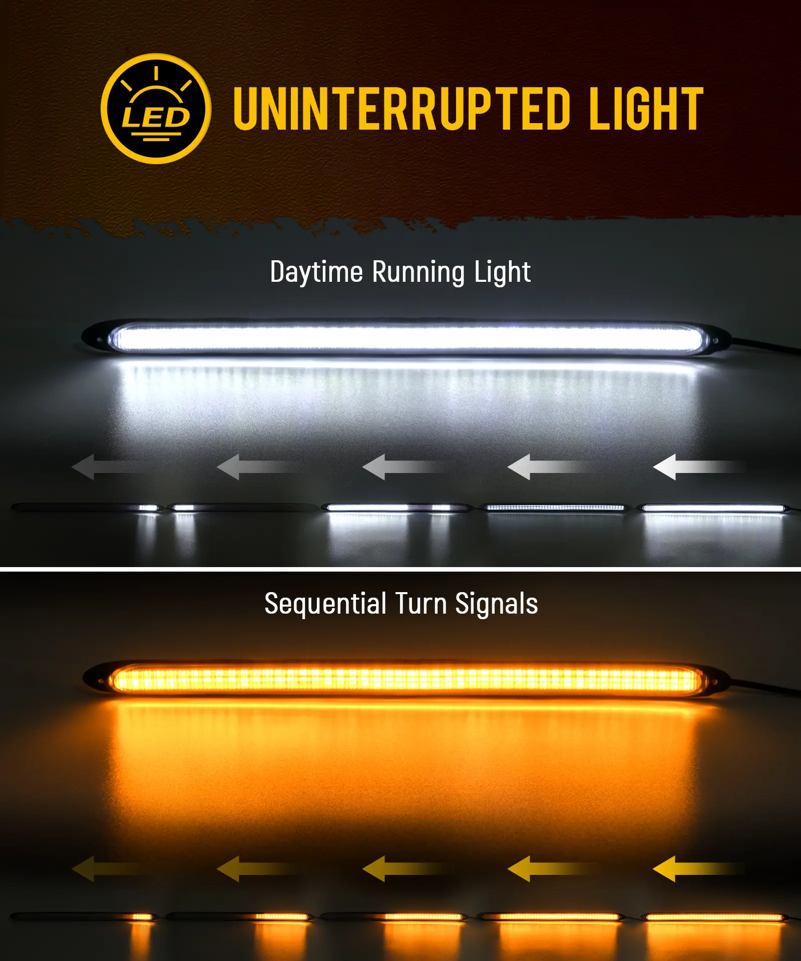 Partsam 2Pcs Flexible Daytime Running Light Strip Auto Headlight Sequential White Turn Signal Yellow Led Light Waterproof