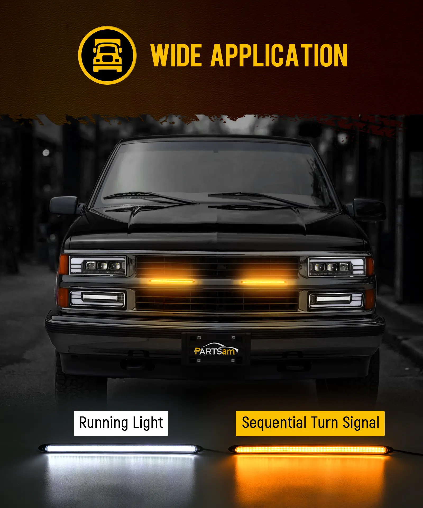 Respuesta a @Adiel Tellez527 Partsam 2Pcs Flexible Daytime Running Light Strip Auto Headlight Sequential White Turn Signal Yellow Led Light Waterproof.     &.      Partsam LED Headlights Assembly DOT Approved for Silverado C/K 1500/2500/3500 88-98, 6500K with Sequential Turn Signal, Start Animation DRL, Hi/Low Beam