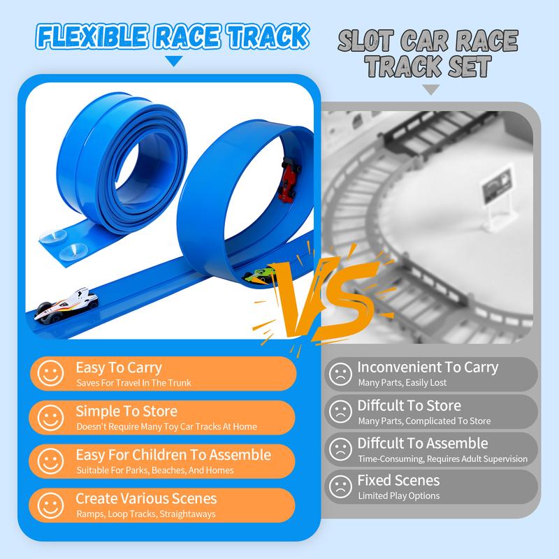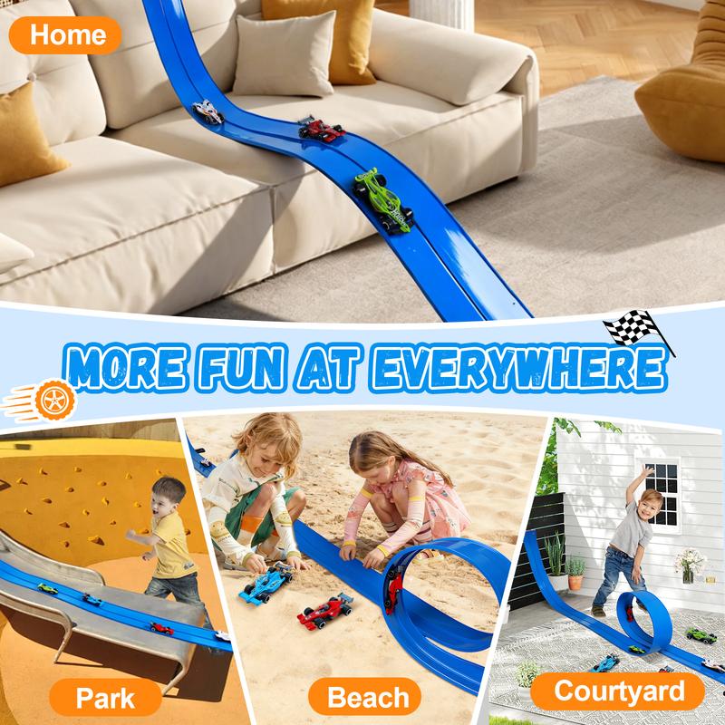 Flexible Racing Track Set – 15ft Roll-Up Track with 4 Mini Speed Cars & Suction Mounts | Portable Indoor Ramp Racing Toy for Kids
