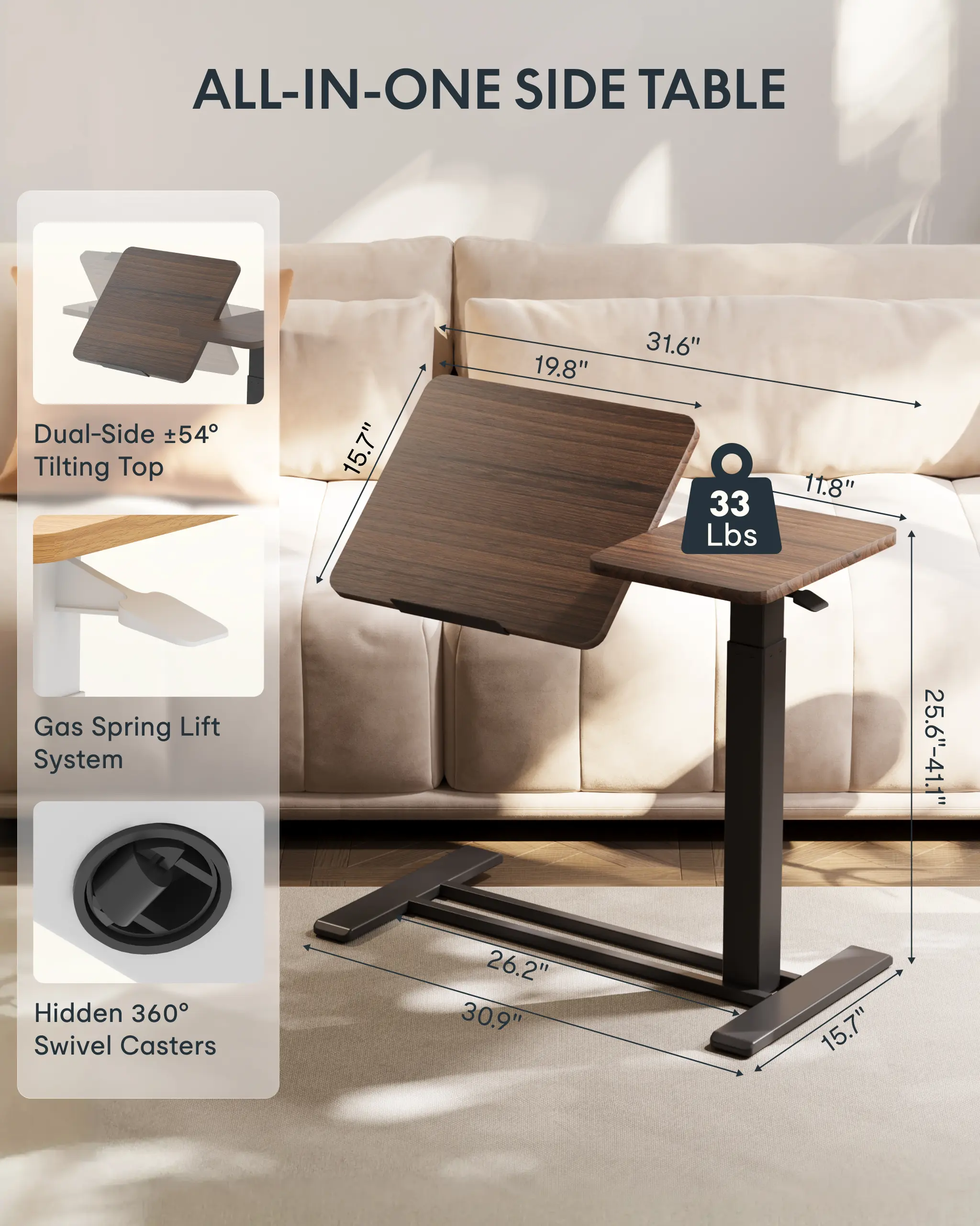 Experience seamless transitions with a one-touch gas spring lift system. Easily adjust the height to your preferred level for use next to sofas, recliners, or beds. This non-powered, smooth mechanism ensures an ergonomic reach whether you are sitting or standing.