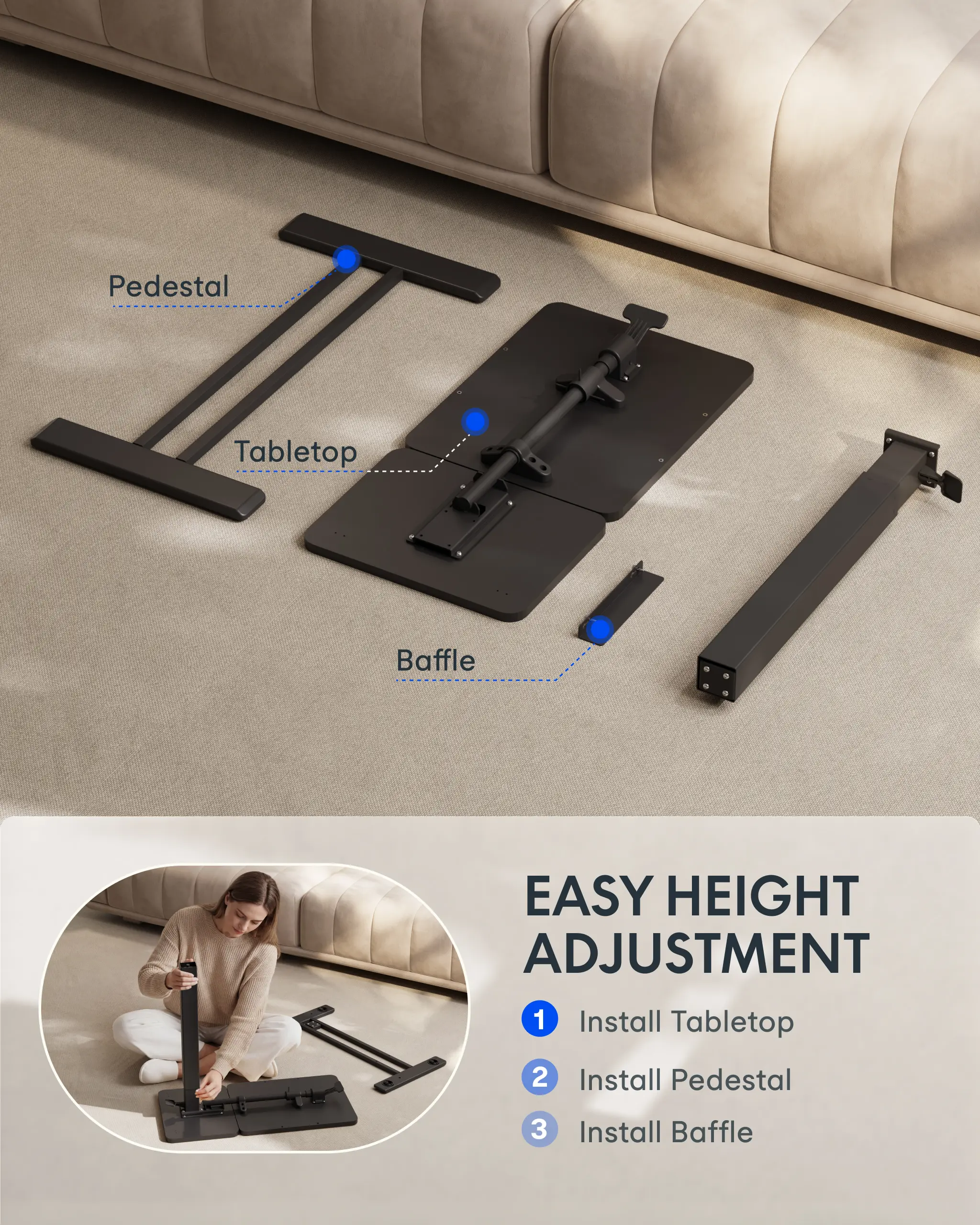 Four integrated hidden casters provide 360° swivel movement, allowing the table to glide smoothly across various floor types. Effortlessly relocate your workspace from the living room to the bedside without the need for heavy lifting.