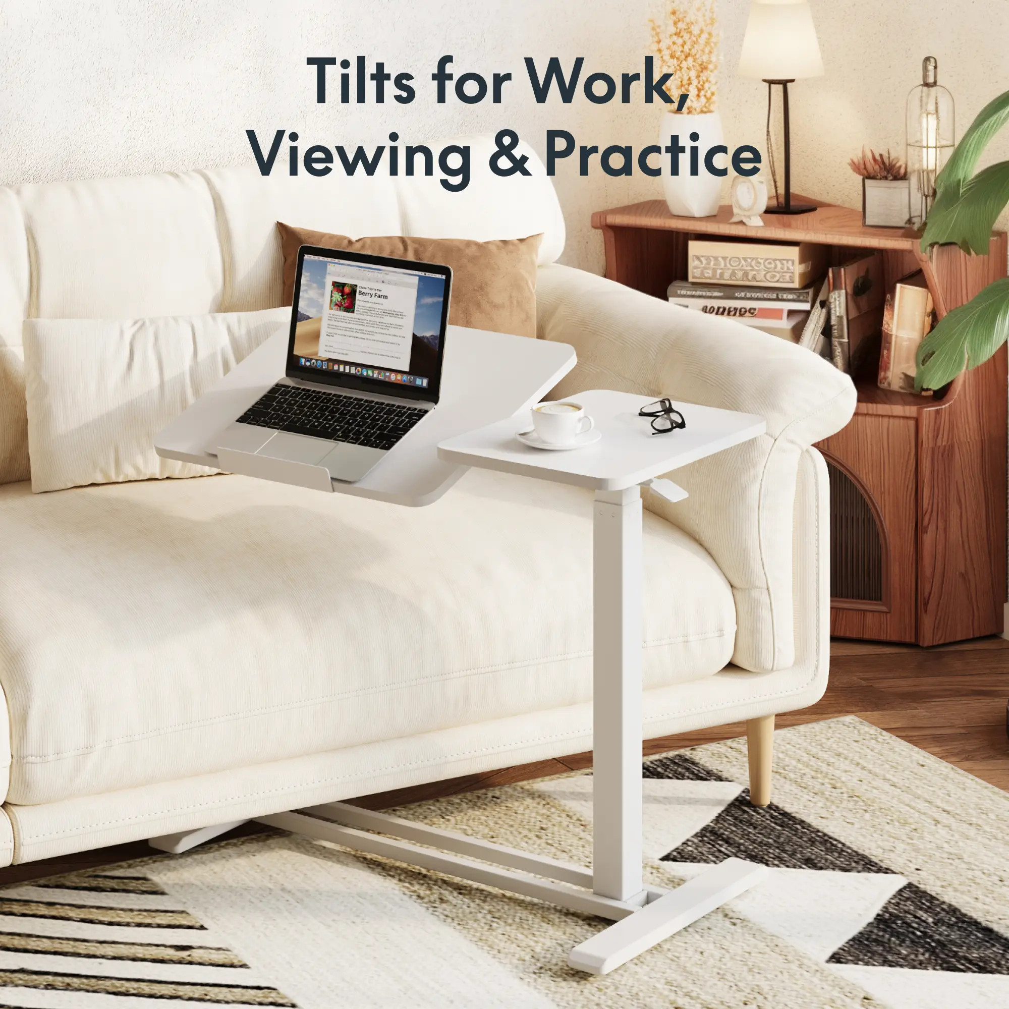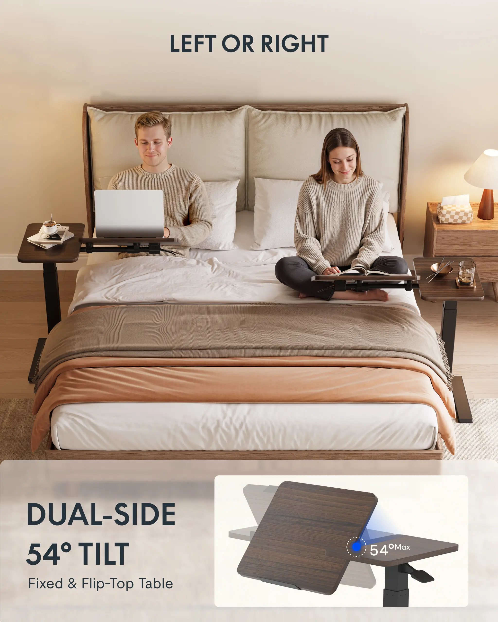 The innovative split-top design offers dual surfaces for maximum flexibility. The tilting section adjusts to multiple angles for optimal laptop use or reading, while the fixed side surface keeps your beverages, snacks, or devices secure and level.