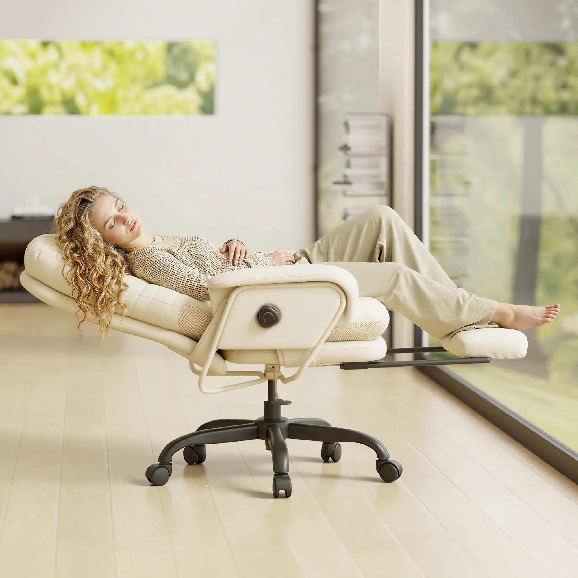 Features a smooth, lockable mechanism with 4 preset angles (90°/115°/140°/165°). Easily adjust the recline and height with the side-mounted control lever to find your perfect posture for gaming, reading, or napping.