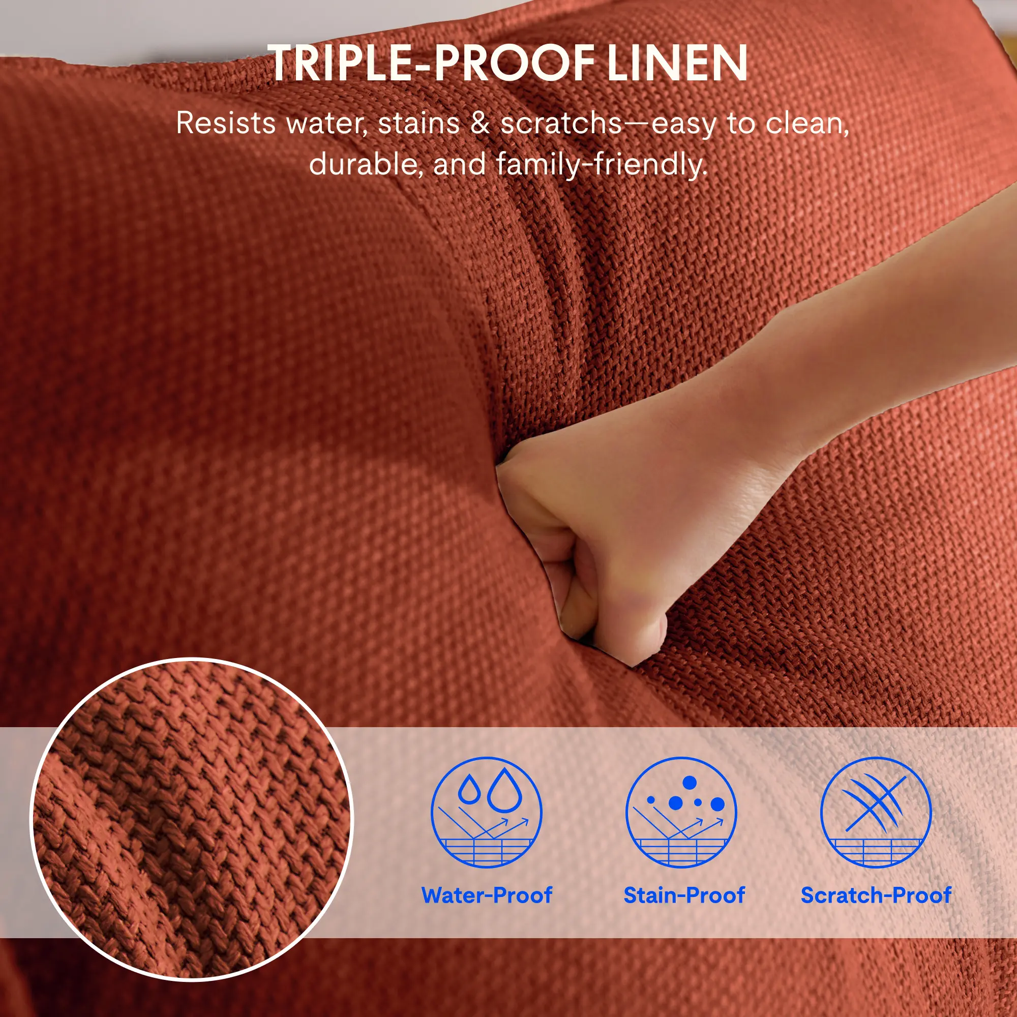 5. 【Breathable Orange Brown Linen & Easy Style】 Wrapped in premium, breathable Orange Brown Linen fabric, this chair adds a warm, modern touch to any room. The skin-friendly linen material ensures comfort in all seasons and is durable enough for pet-friendly households, blending style with everyday practicality.