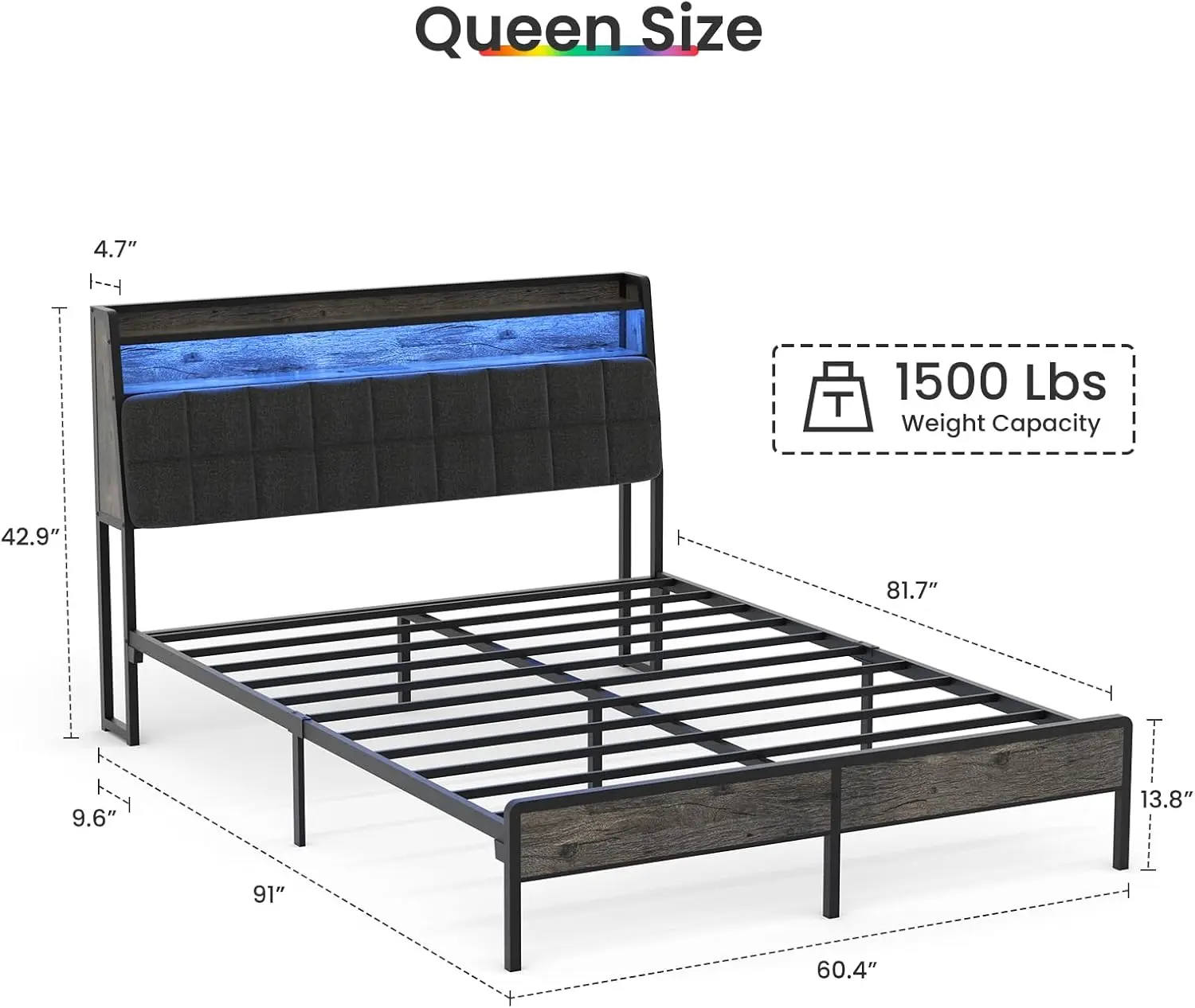 ·Capacity: The queen size bed can load up to 880 lbs.