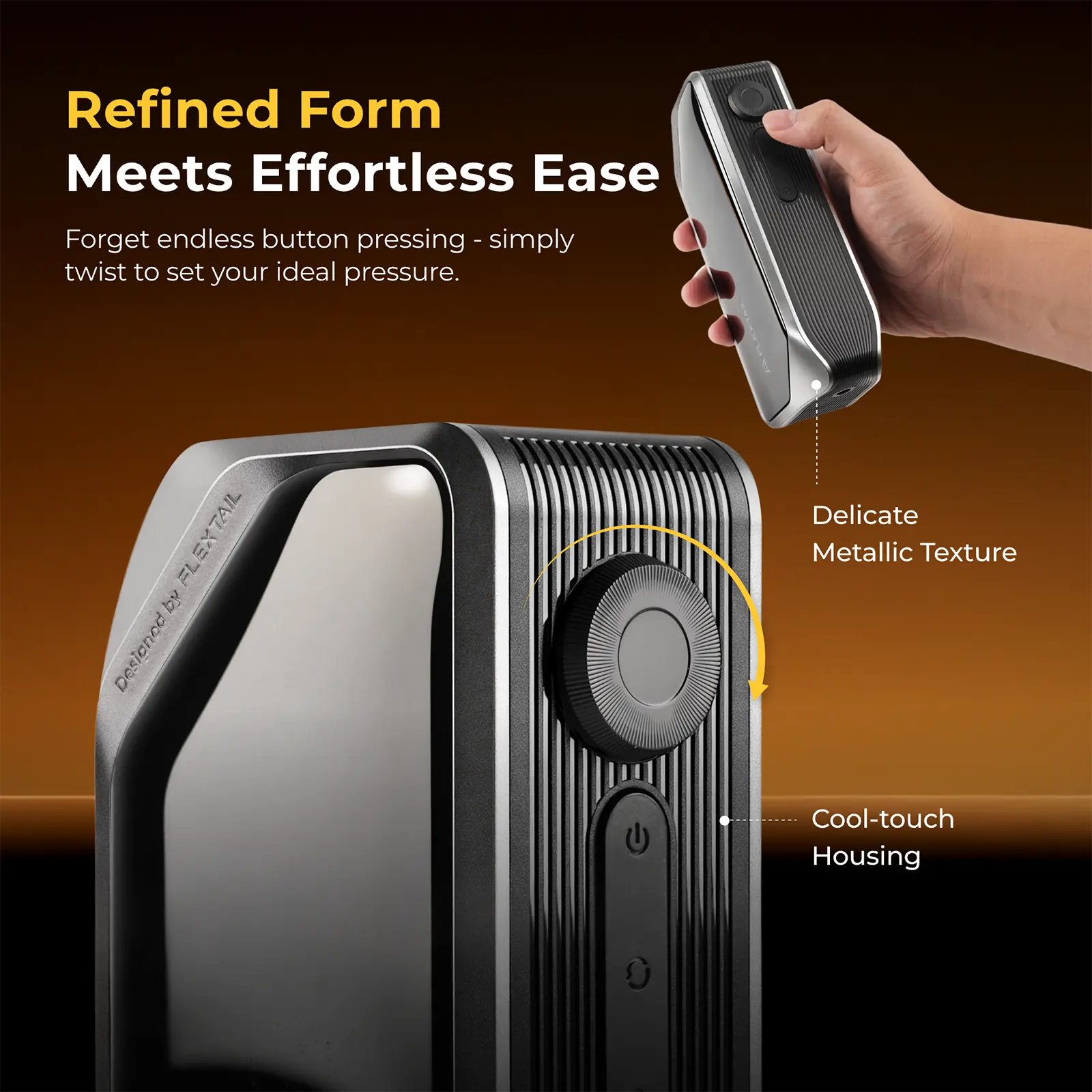 FLEXTAIL 150PSI Tire Inflator Portable Air Compressor, Knob Pressure Control, with 2.5D Curved Screen, Fast Air Compressor for Car, Bike & Inflatables — Rechargeable Air Pump with LED Display & Auto Stop