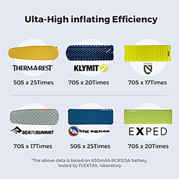 Inflation & Deflation|2.5kPa, 80sec to fill a sleeping mat.