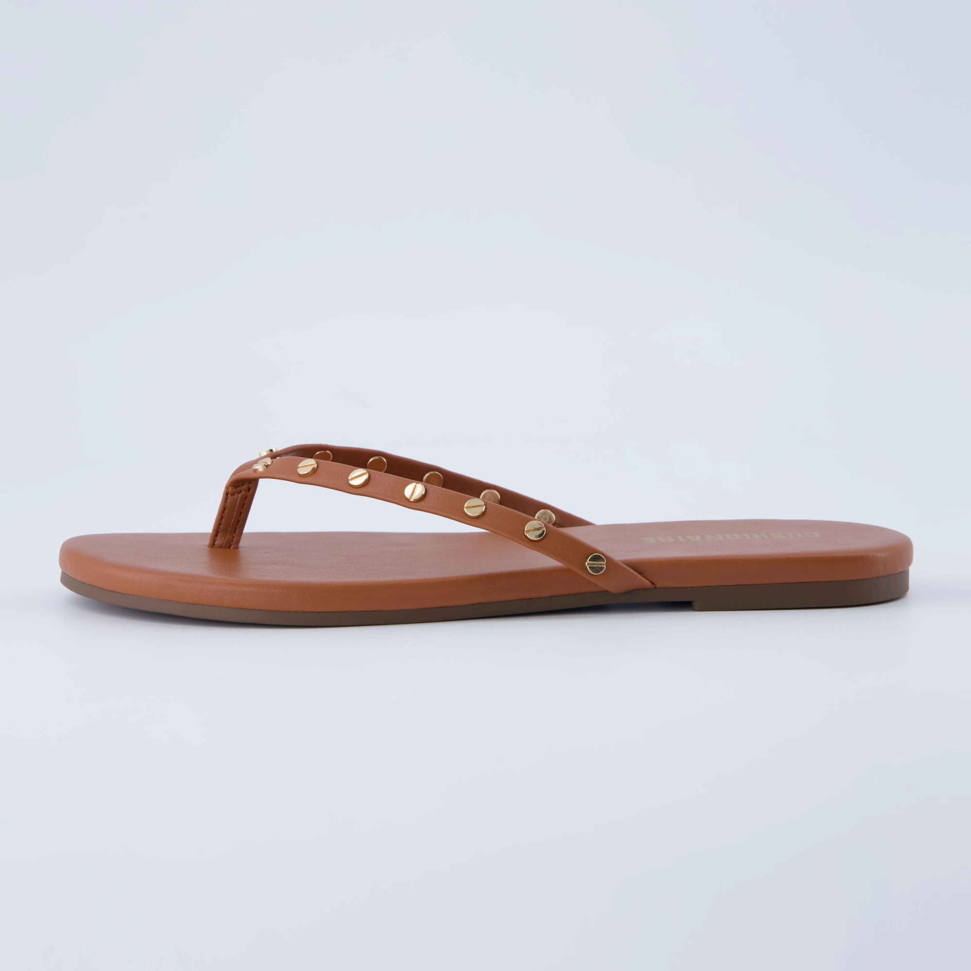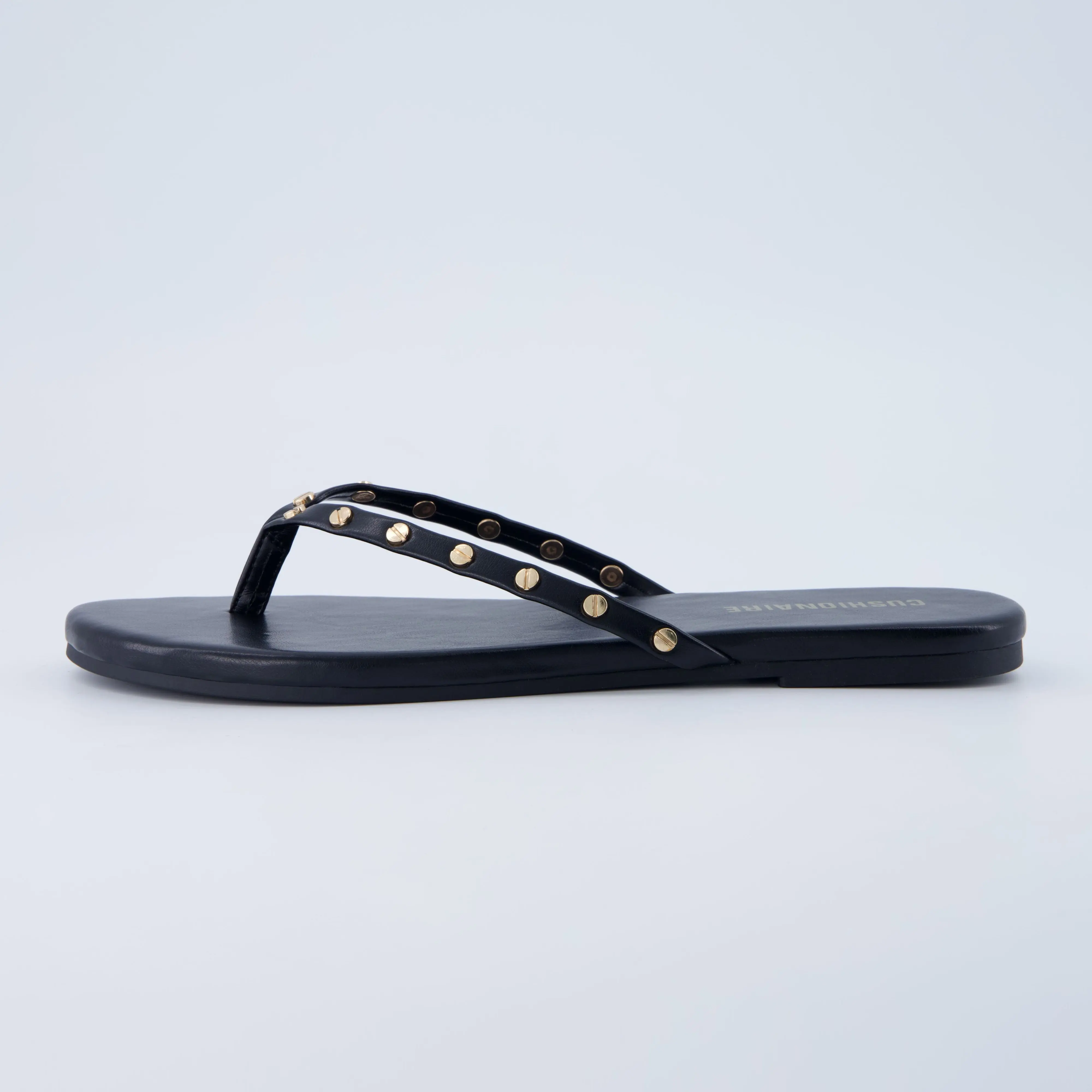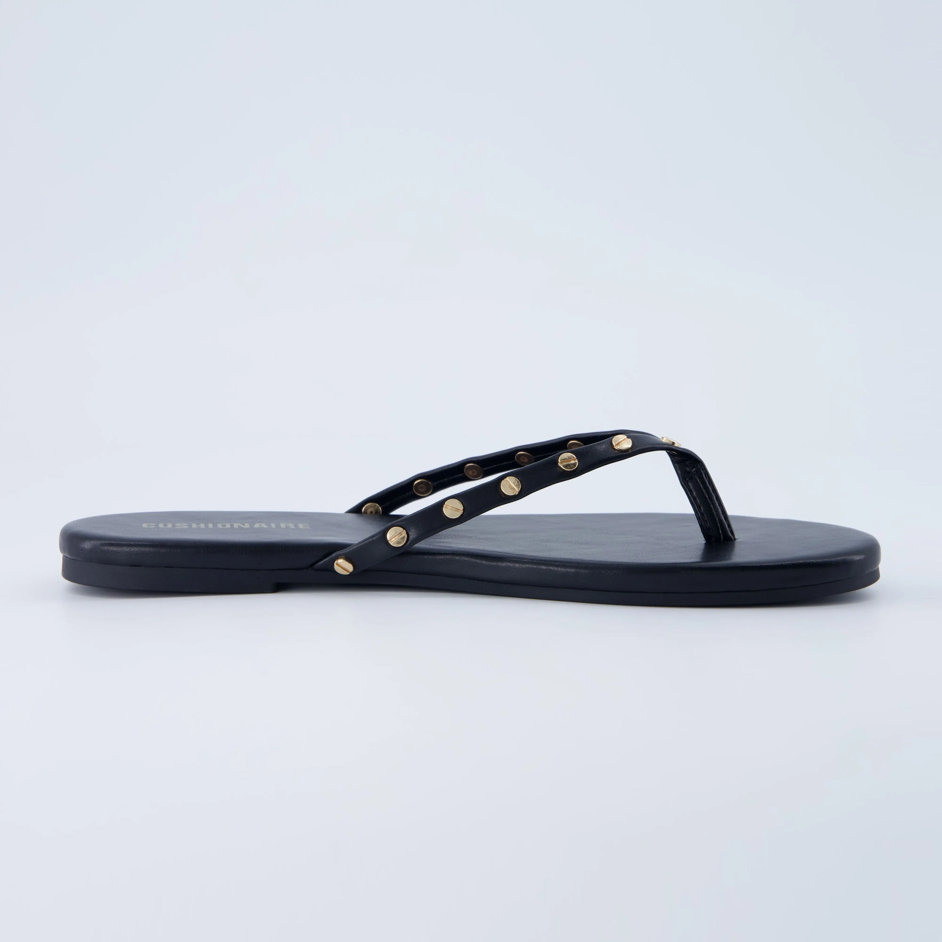 ·𝗦𝘁𝘂𝗱𝗱𝗲𝗱 𝗧𝗵𝗼𝗻𝗴 𝗦𝘁𝗿𝗮𝗽 – Gold-tone rivets add bold style to this flip flop sandal for an elevated, trendy touch.