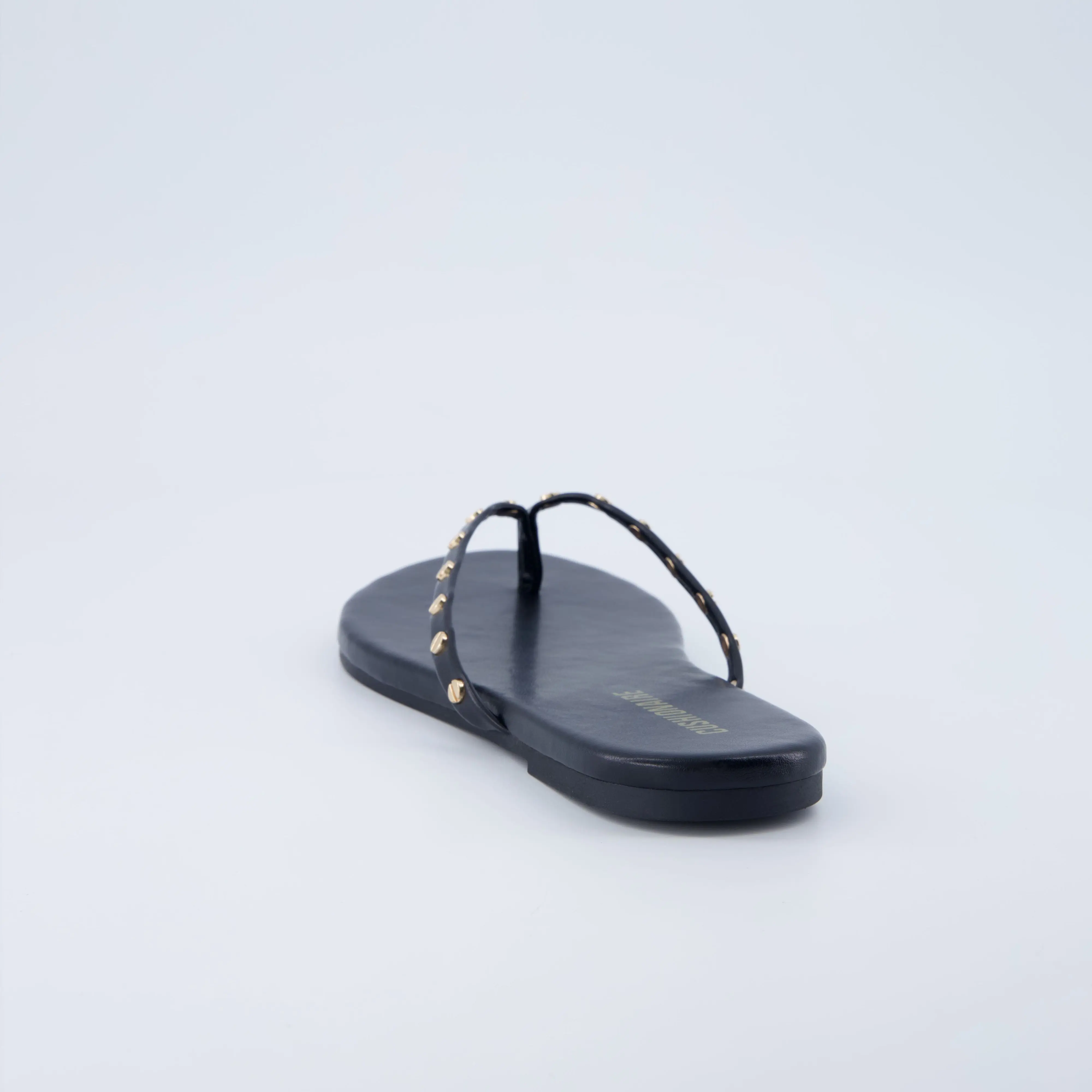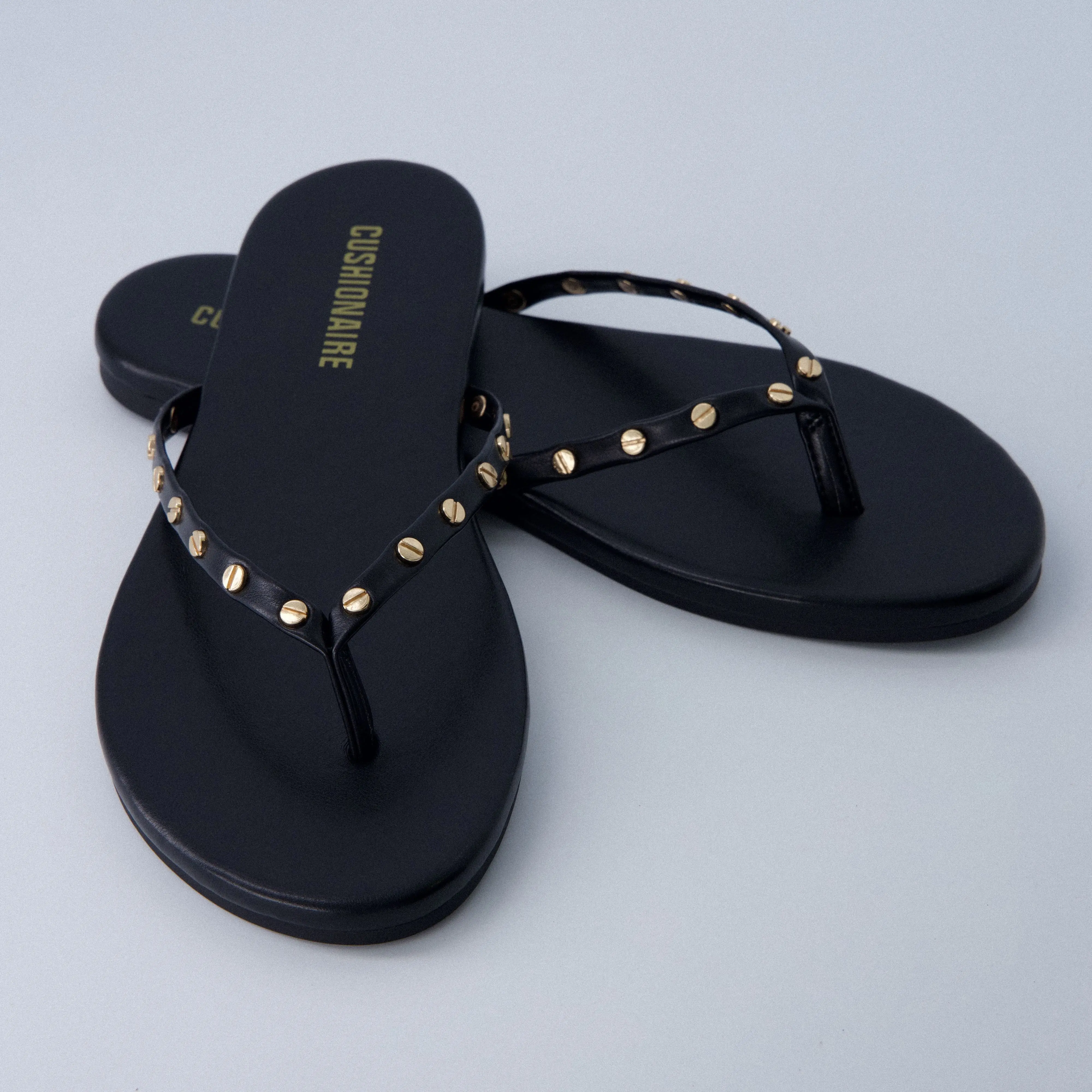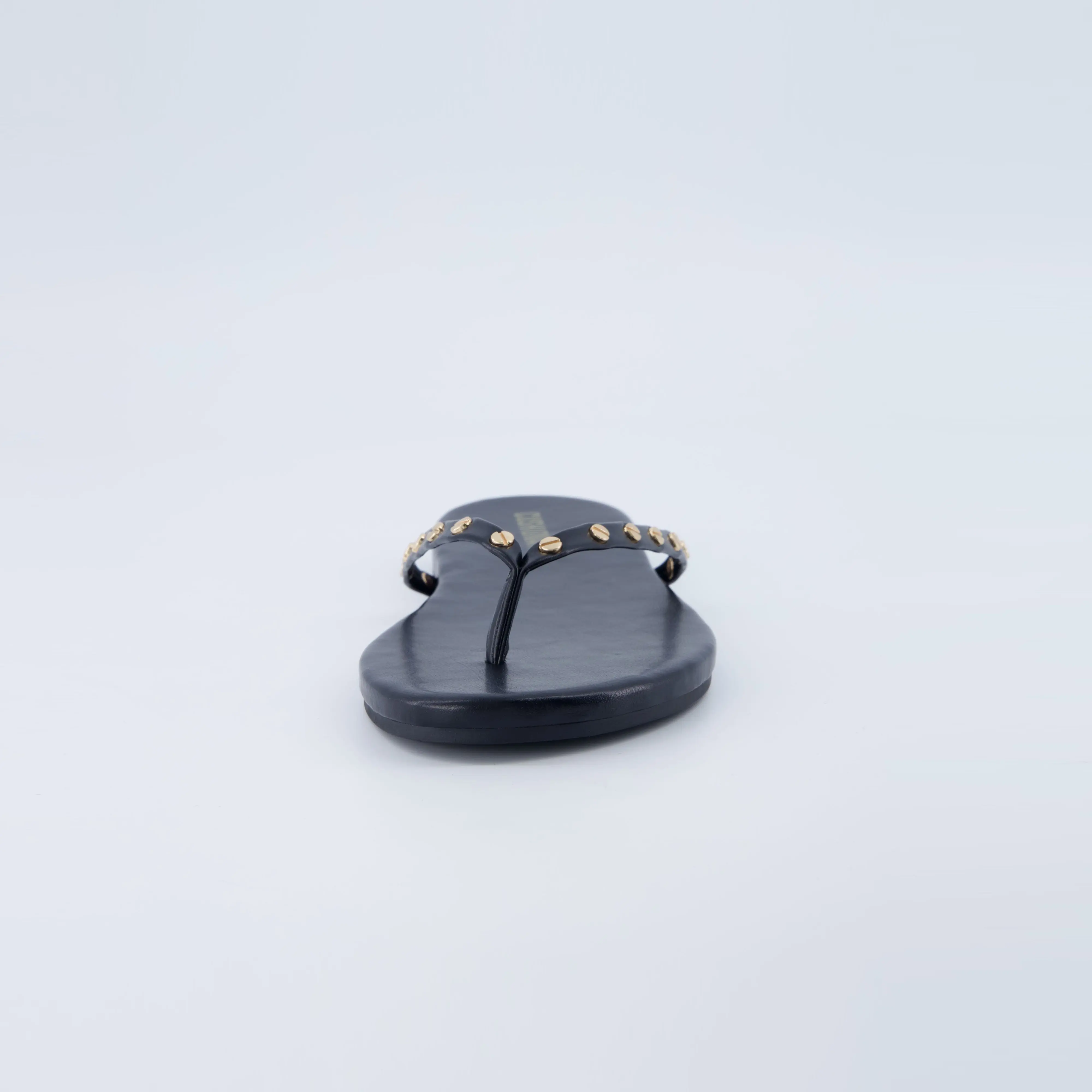 ·𝗦𝘁𝘂𝗱𝗱𝗲𝗱 𝗧𝗵𝗼𝗻𝗴 𝗦𝘁𝗿𝗮𝗽 – Gold-tone rivets add bold style to this flip flop sandal for an elevated, trendy touch.