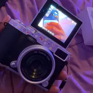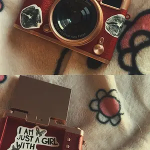 super cute camera i love love looovee it sm !! the quality is pretty good for the price and the design is so nice i love taking selfies w it. it even comes with stickers, but i added my own🤍