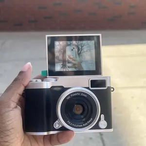 Very good camera! It takes photos is that grainy, low-quality 2000’s aesthetic that everyone likes to create. Besides the camera, it comes with a lox of extras that you would need to buy yourself otherwise. The mic when recording videos could be better.