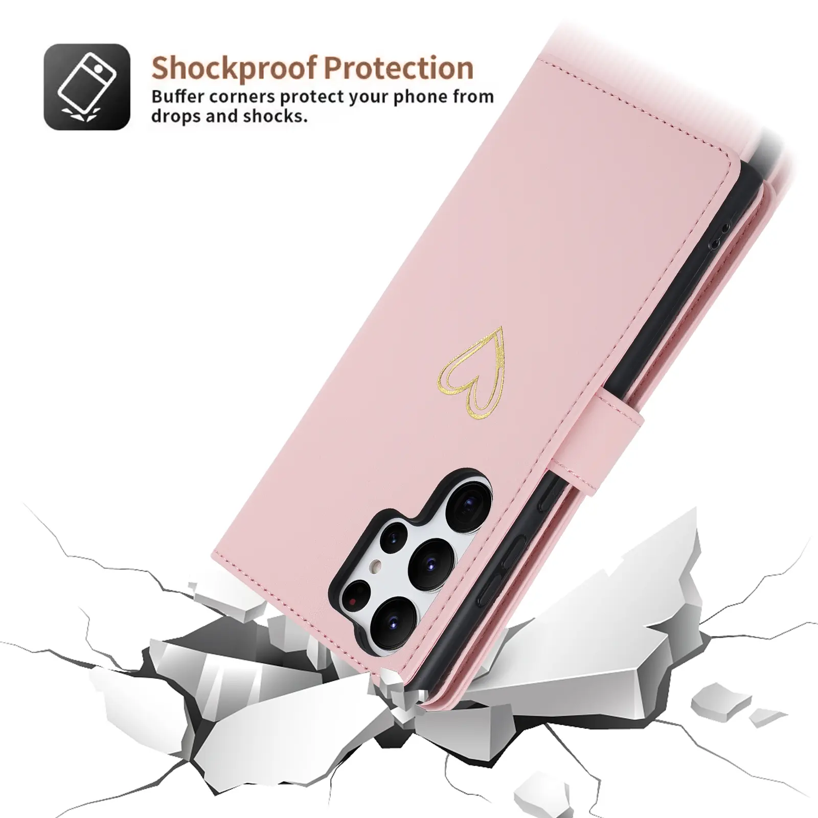 Ever fumble with your phone and wallet separately? This Samsung leather wallet case combines both in one sleek, protective package. Crafted from high-quality premium PU leather, it shields your phone from scratches and shocks while adding a touch of glam. The shockproof TPU inner shell keeps your device safe from accidental drops.