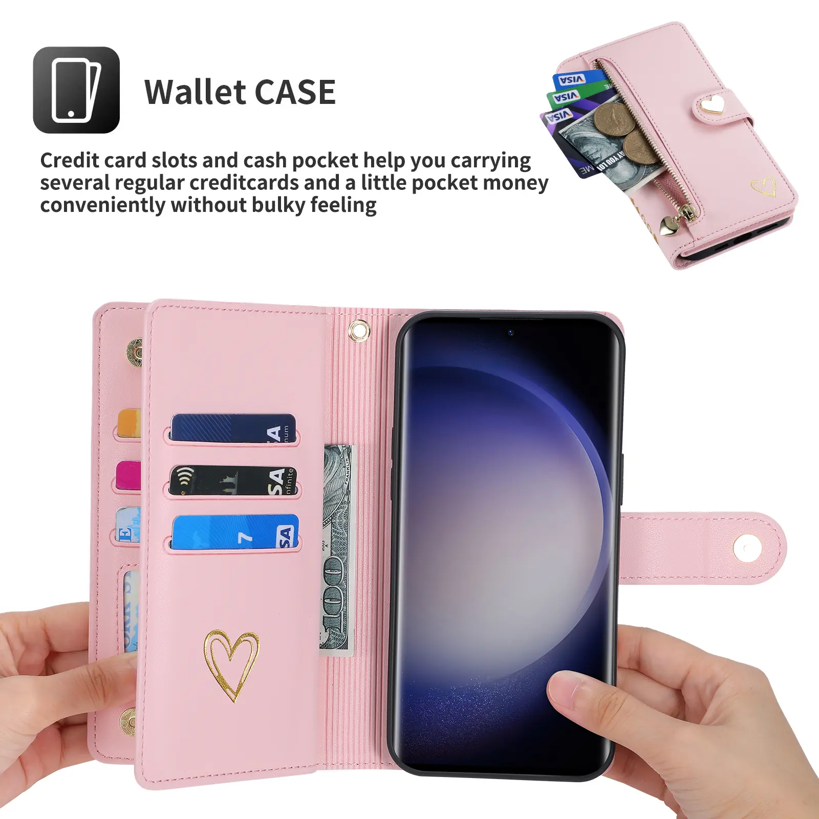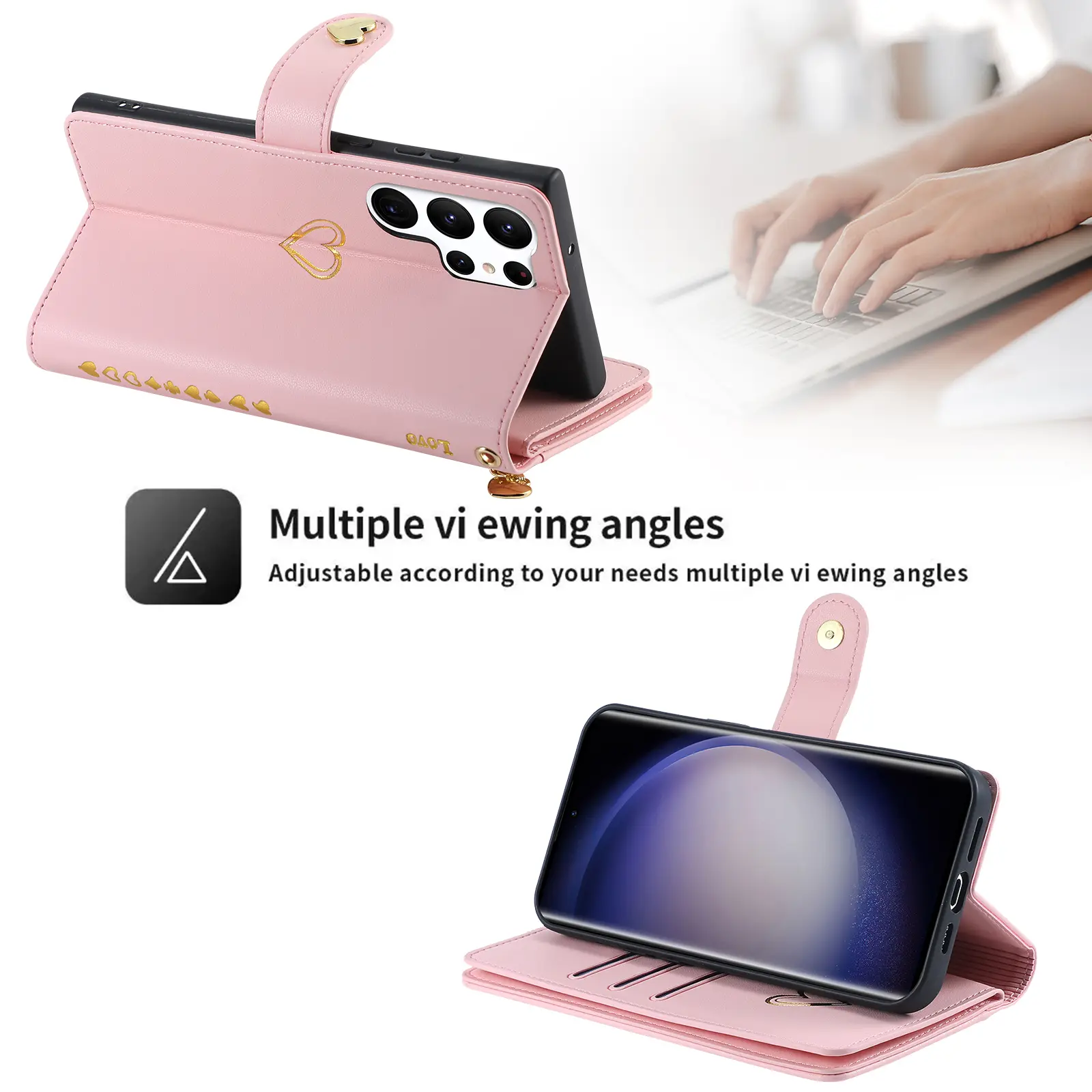 Enjoy hands-free convenience with the flip stand feature, perfect for binge-watching or video calls with adjustable viewing angles. The wallet design includes nine card slots, three cash pockets, and a zipper coin compartment, so you can carry your essentials without the bulk of a separate wallet. A magnetic clasp keeps everything securely in place.