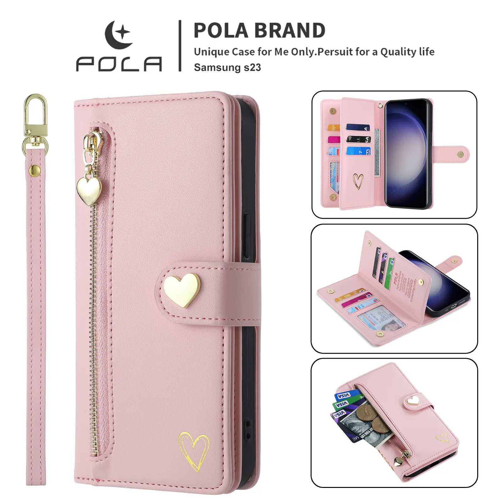 Precise cutouts give you full access to all buttons, ports, and cameras without removing the case. Plus, the included strap makes it easy to carry your phone like a mini purse.