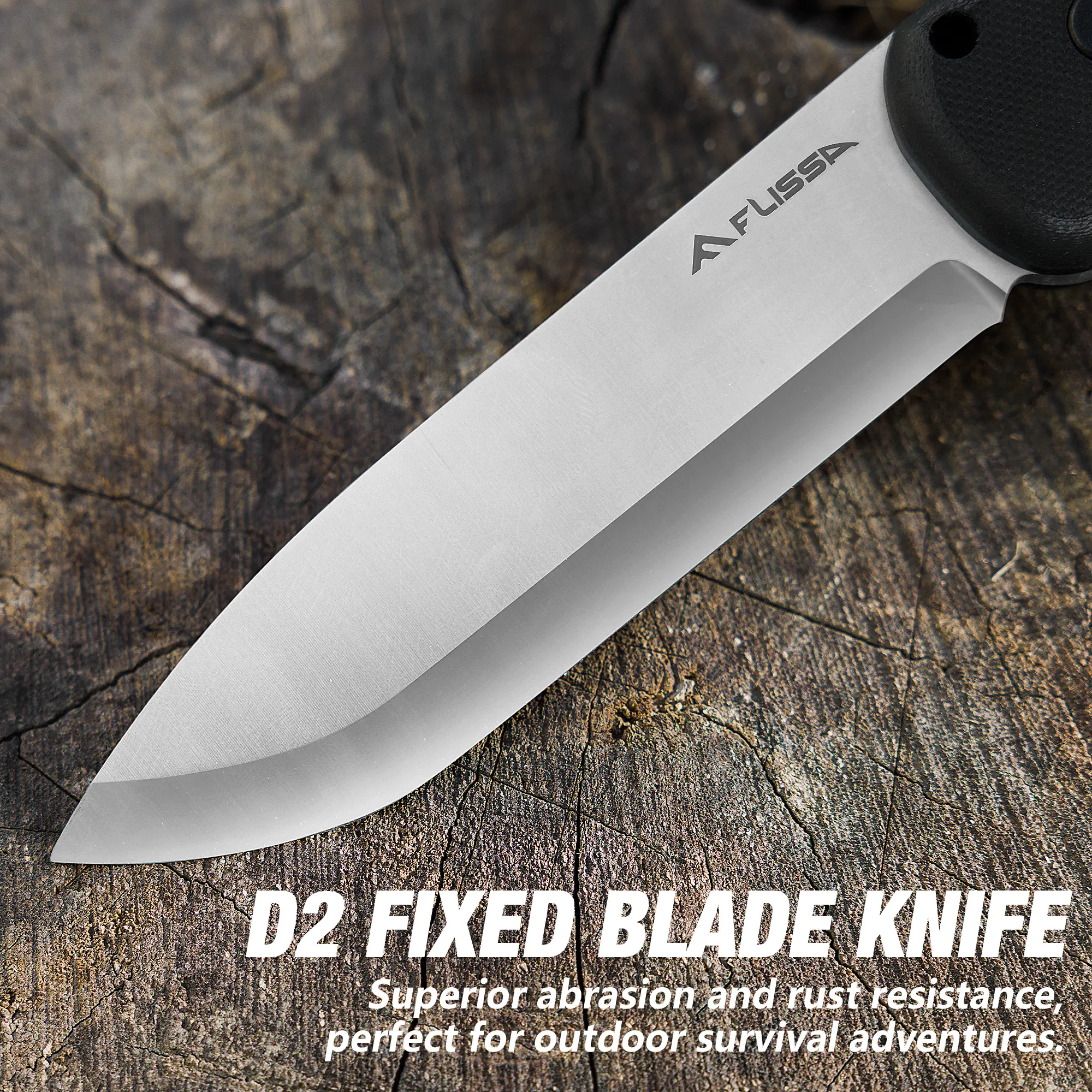 ·Full Tang Design & G10 Handle: FLISSA 9" survival knife adopts full-tang construction, making the blade and handle stay in one solid piece even under a lot of pressure. Ergonomic and lightweight G10 handle provides a more comfortable grip and reduced fatigue, making it an excellent choice for individuals looking for a long-lasting knife option
