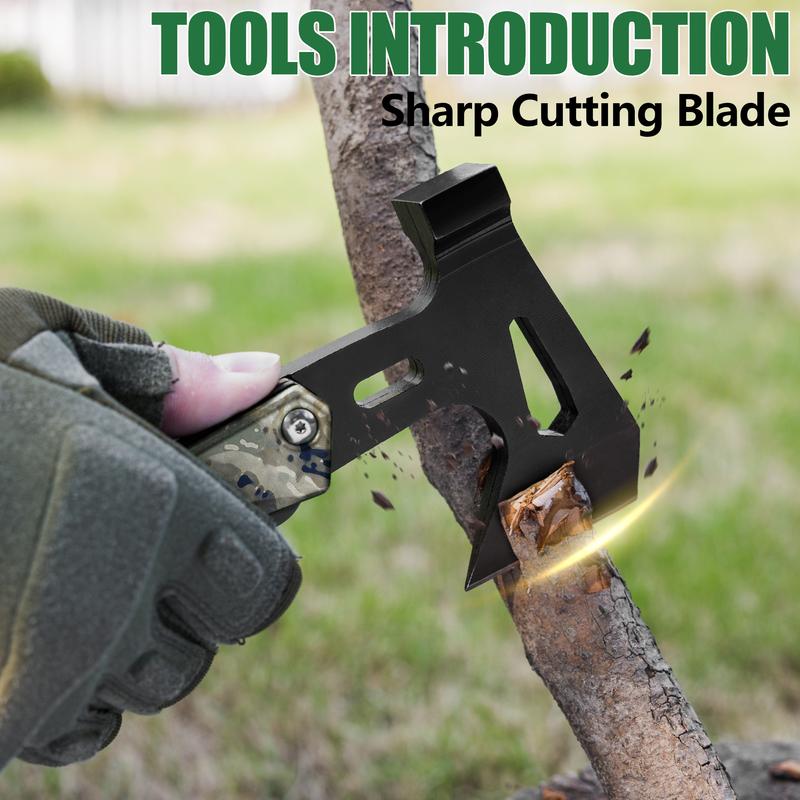 ·Premium Material: The multifunction axe body is made of heavy-duty stainless steel with an aluminum handle, which is sturdy and durable, has stronger sharpness and toughness. The precision polished sharpening angle enables the blade to cut through wood effortlessly.