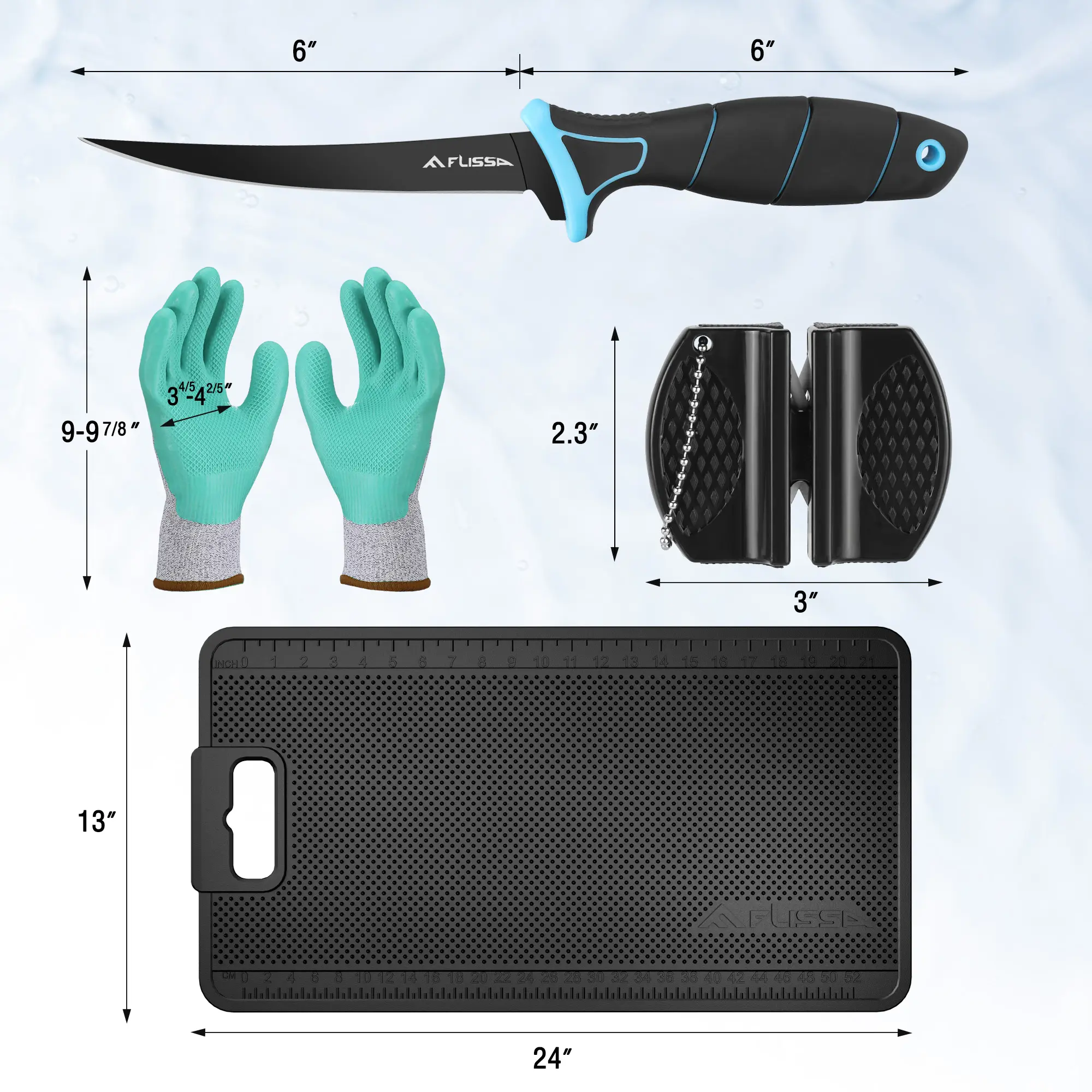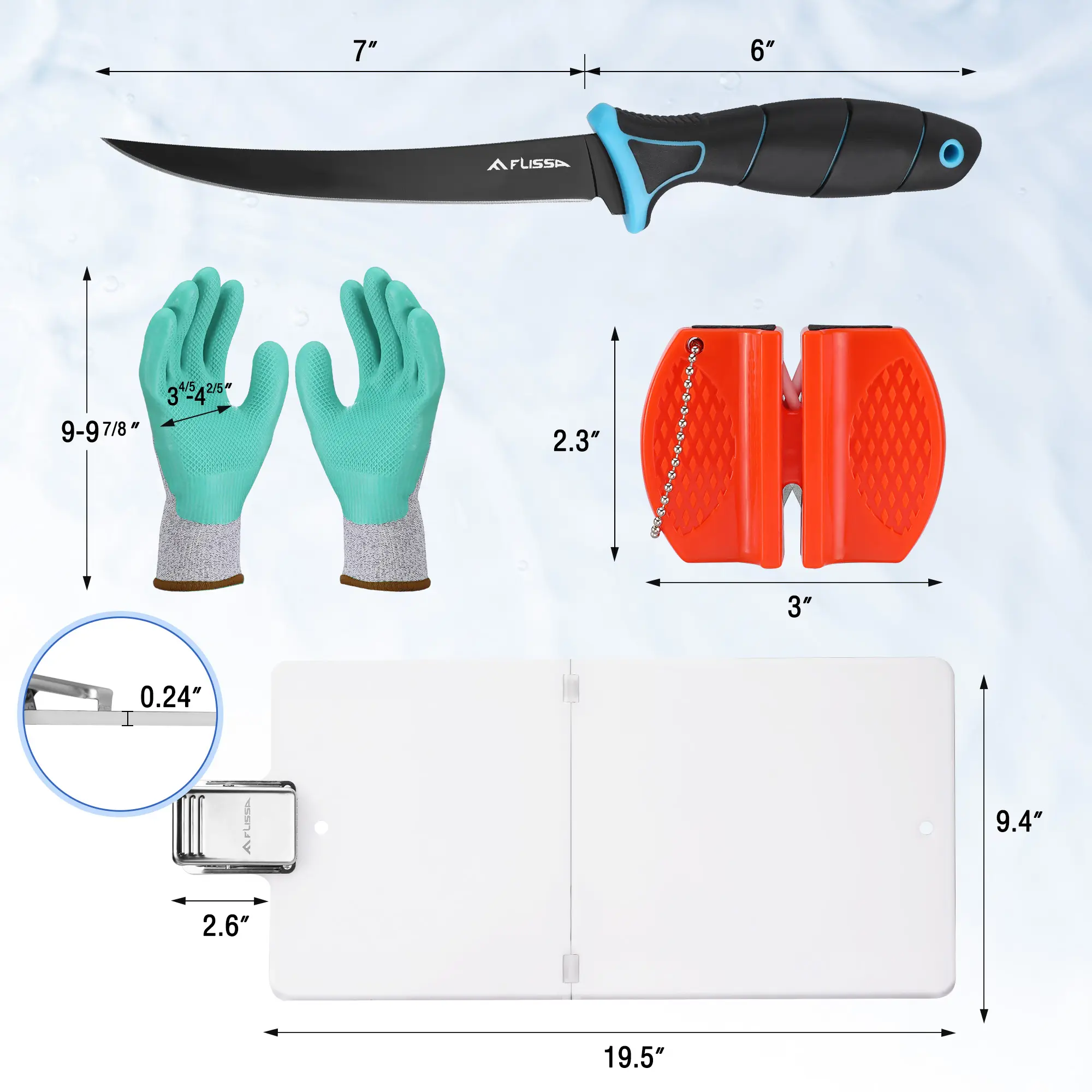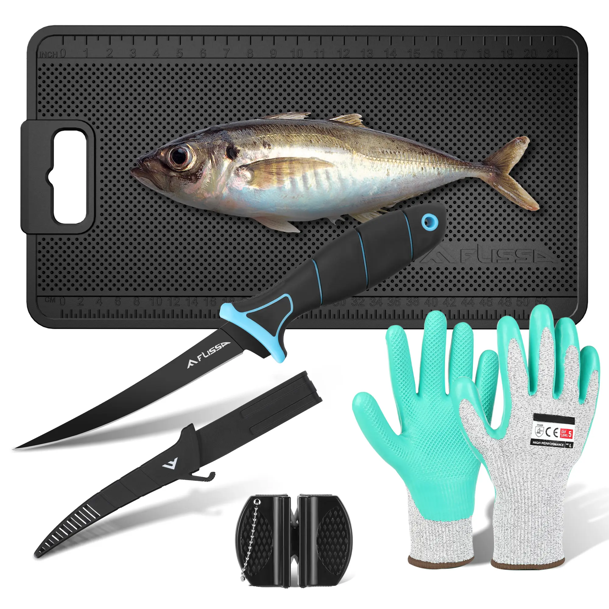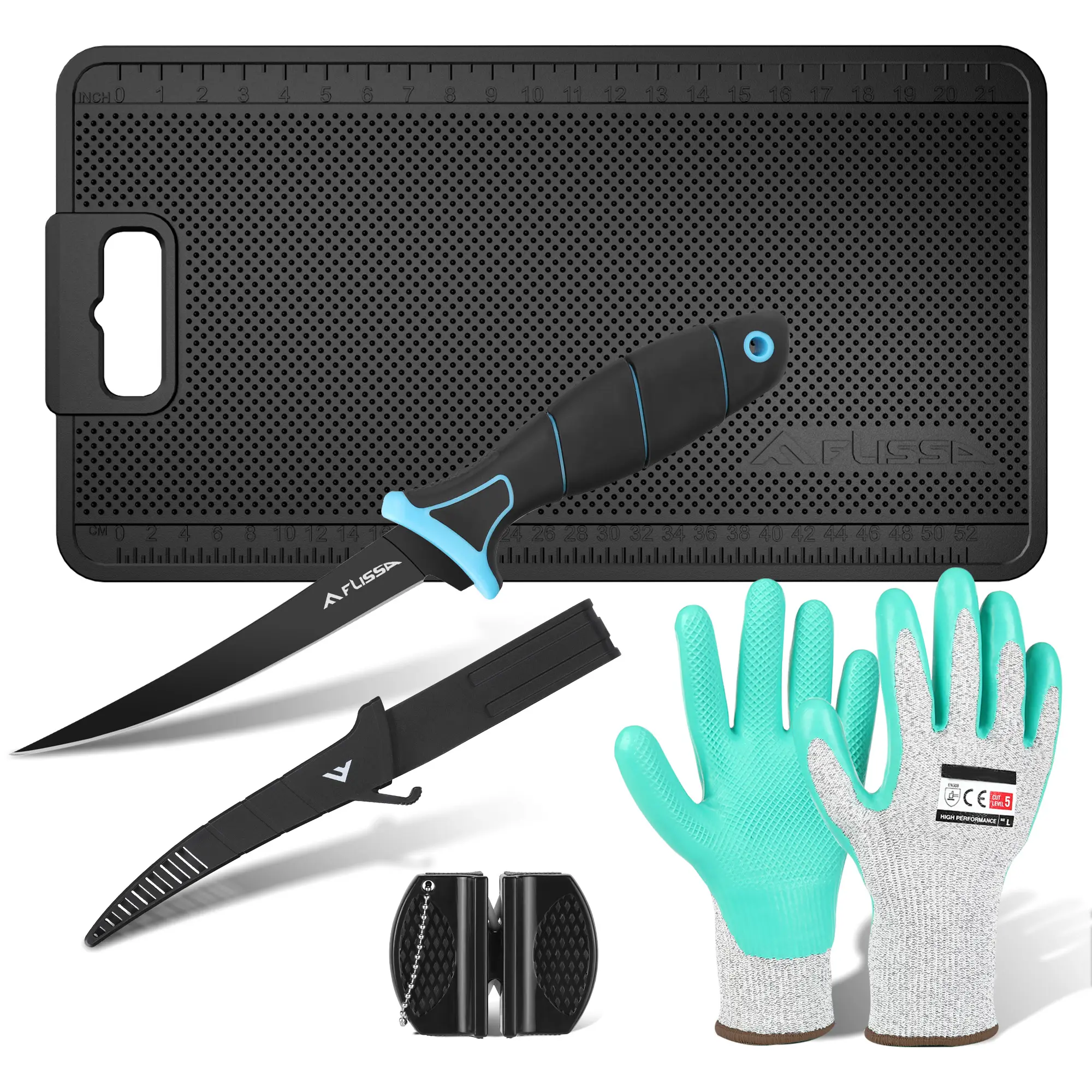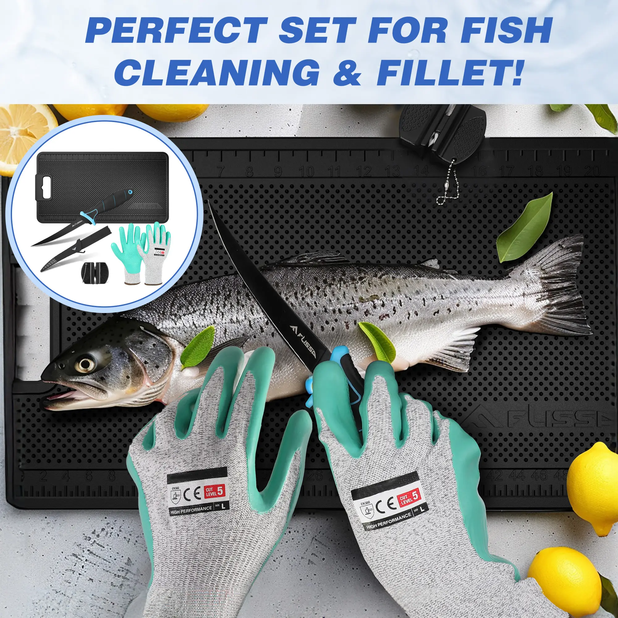 ·Complete Fish Filleting Kit: This fish cleaning kit includes a fillet knife, a foldable fish fillet board with clamp, a pocket knife sharpener and level 5 cut-resistant gloves for extra safety. A must kit for easy and efficient filleting! Perfect gift for family and friends!