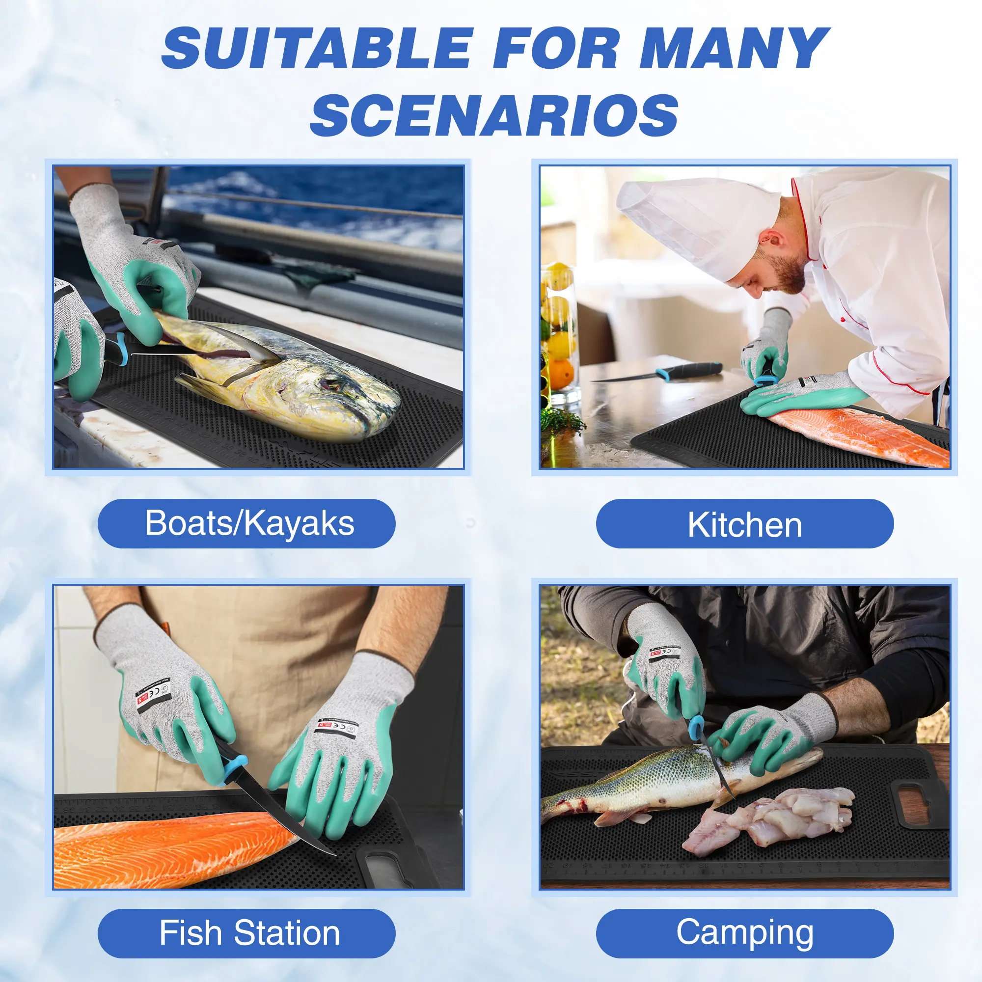 ·Fishing Cutting Board with Clamp Design: The PE fish cleaning board features a unique clamp design. The Deep-jaw clamp enables easy gripping of fish tails and securing bouncy fish, thus facilitating both cleaning and fish cutting tasks.
