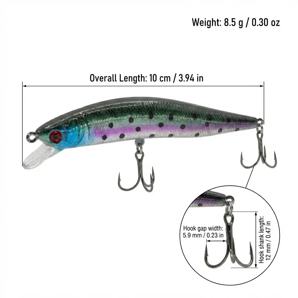 Floating Minnow 10cm / 8.5g — Shallow 0–1m, Loud Flash, Long Cast