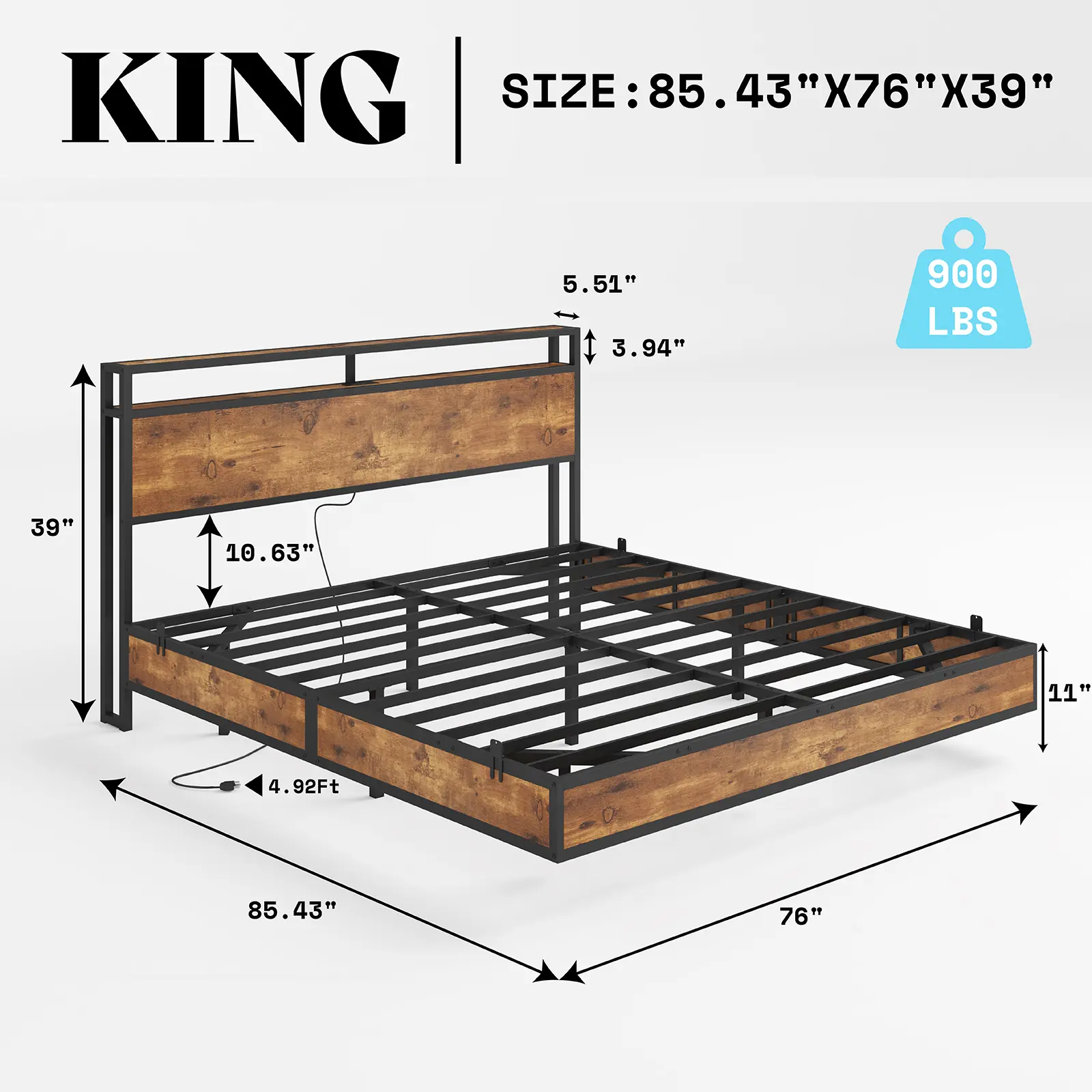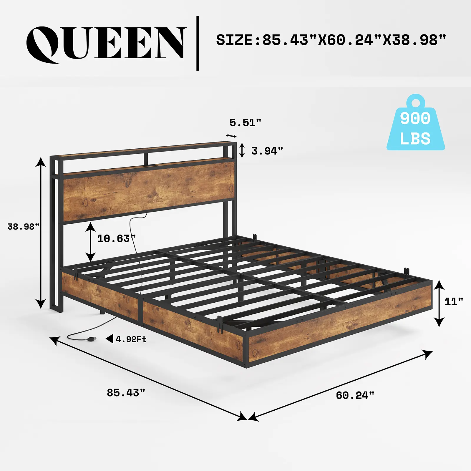 • 【Noise-Free & No Box Spring Needed】 Sturdy metal slats of industrial bed frame with charge station ensure a quiet sleep and support up to 900 lbs. No box spring needed, meeting all your needs