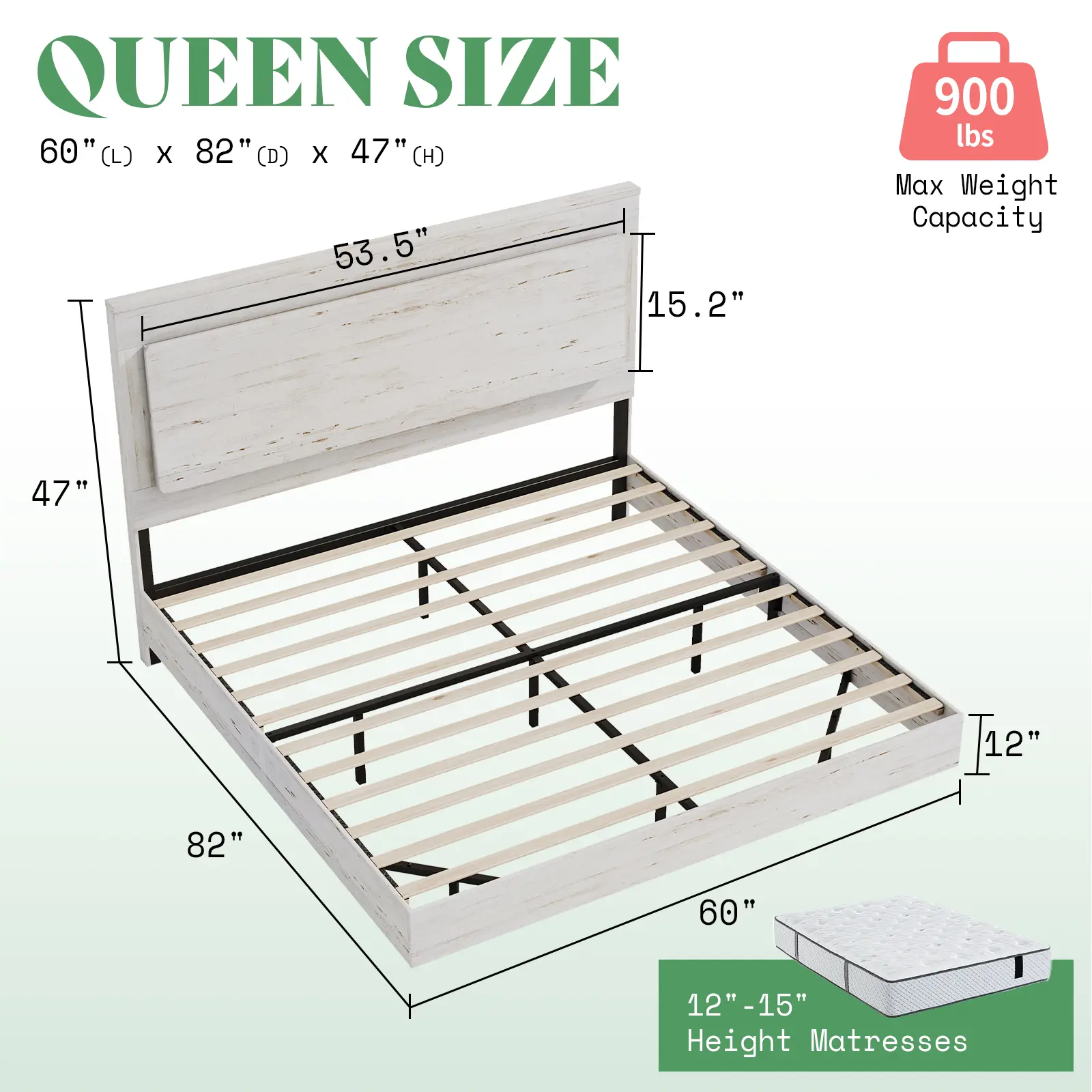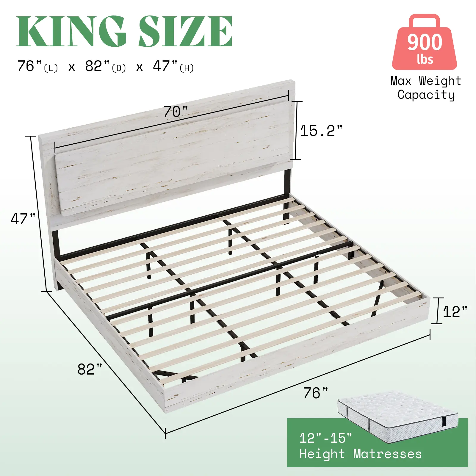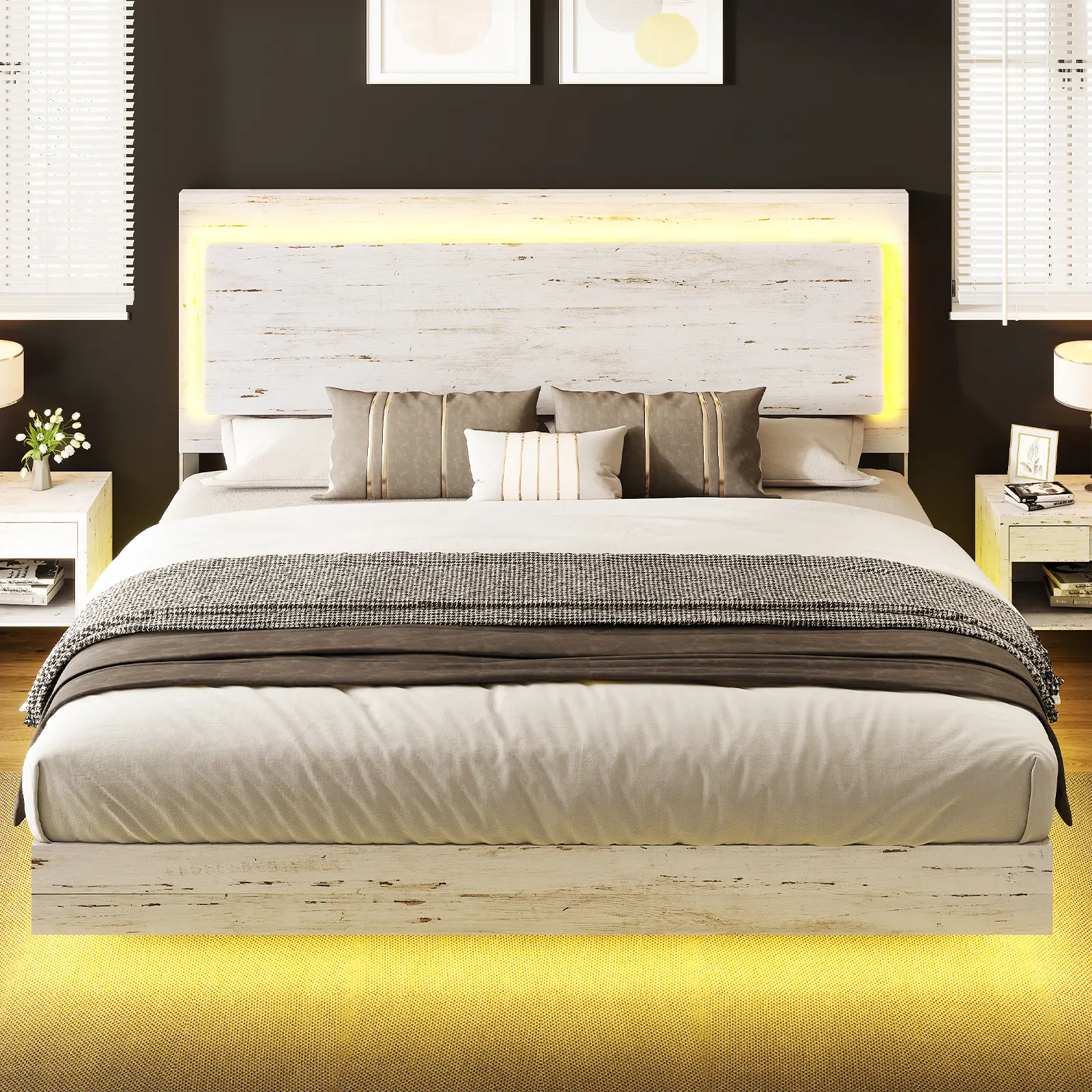 ·Morden & Farmhouse: Unique hidden legs enhance floating visual experience, distressed finish and LED combines modern & rustic to the bed frame.