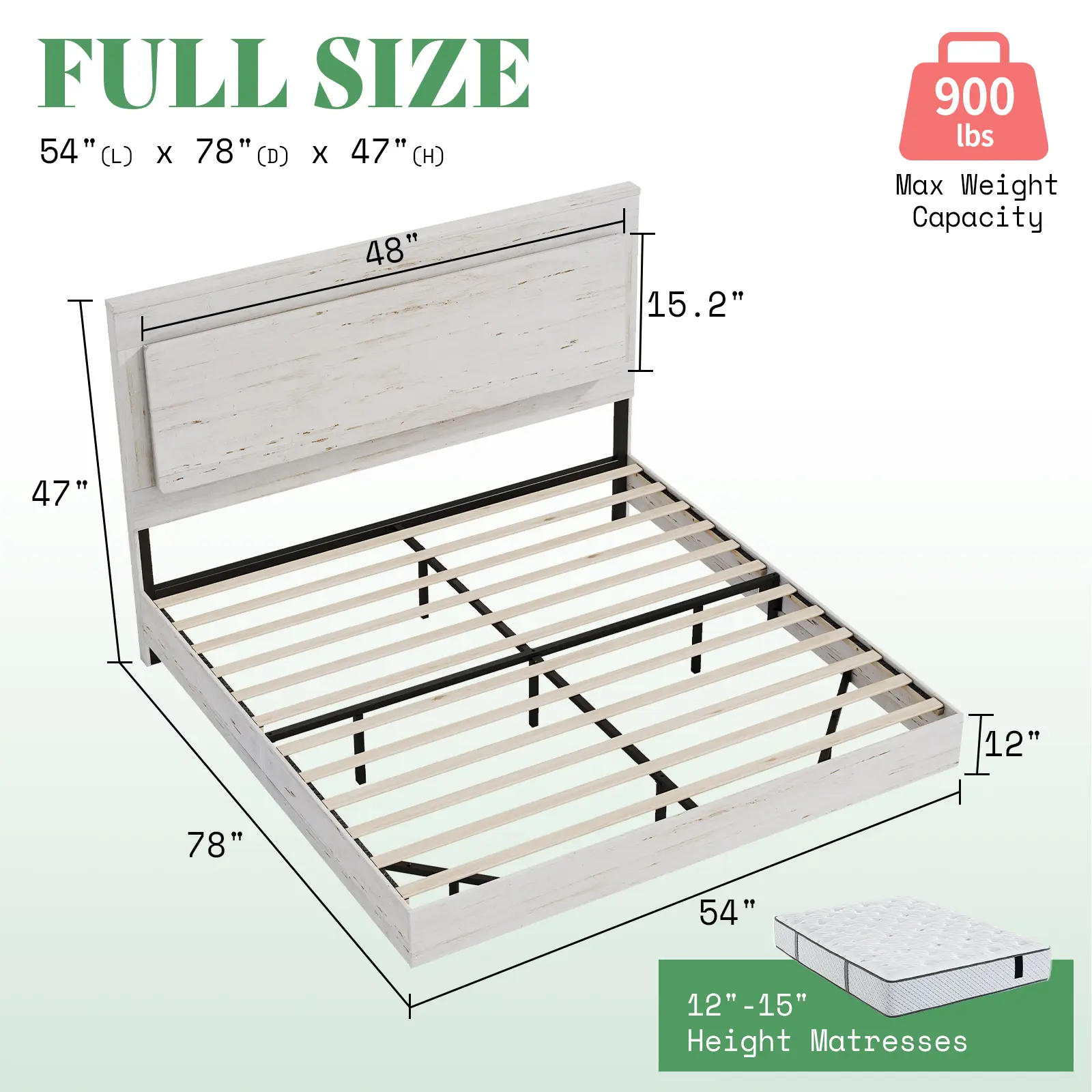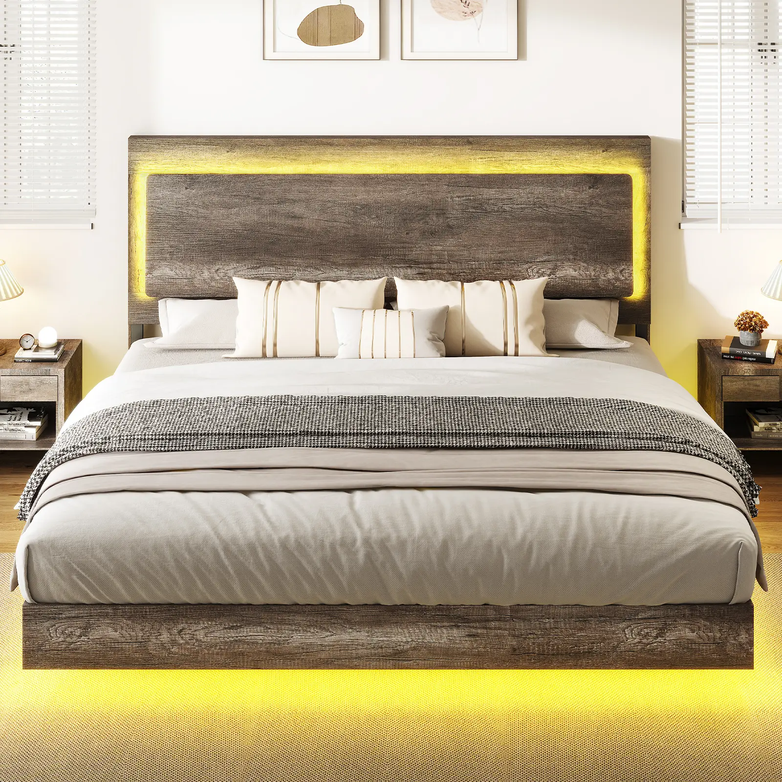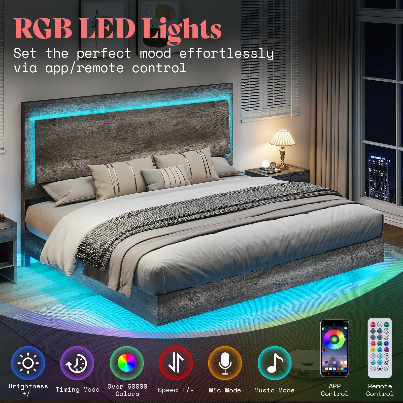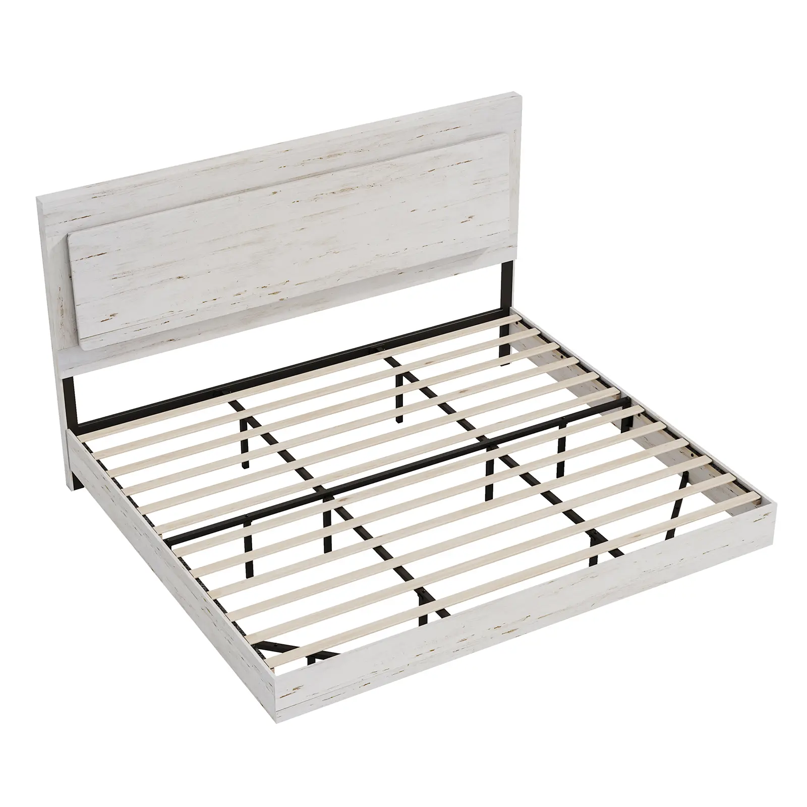 ·Morden & Farmhouse: Unique hidden legs enhance floating visual experience, distressed finish and LED combines modern & rustic to the bed frame.