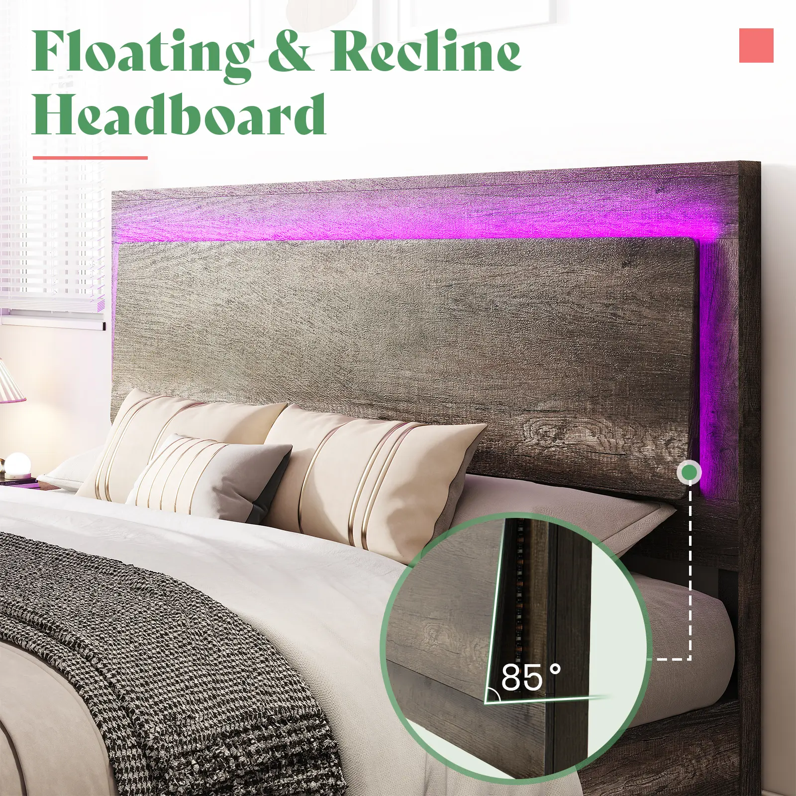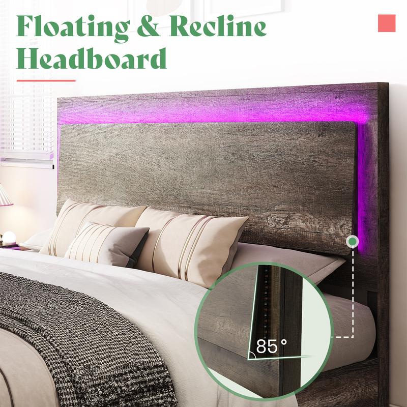 ·Unique Design: Floating & recline design of the center headboard is paired with LED lights, making the floating bed frame more dynamic.
