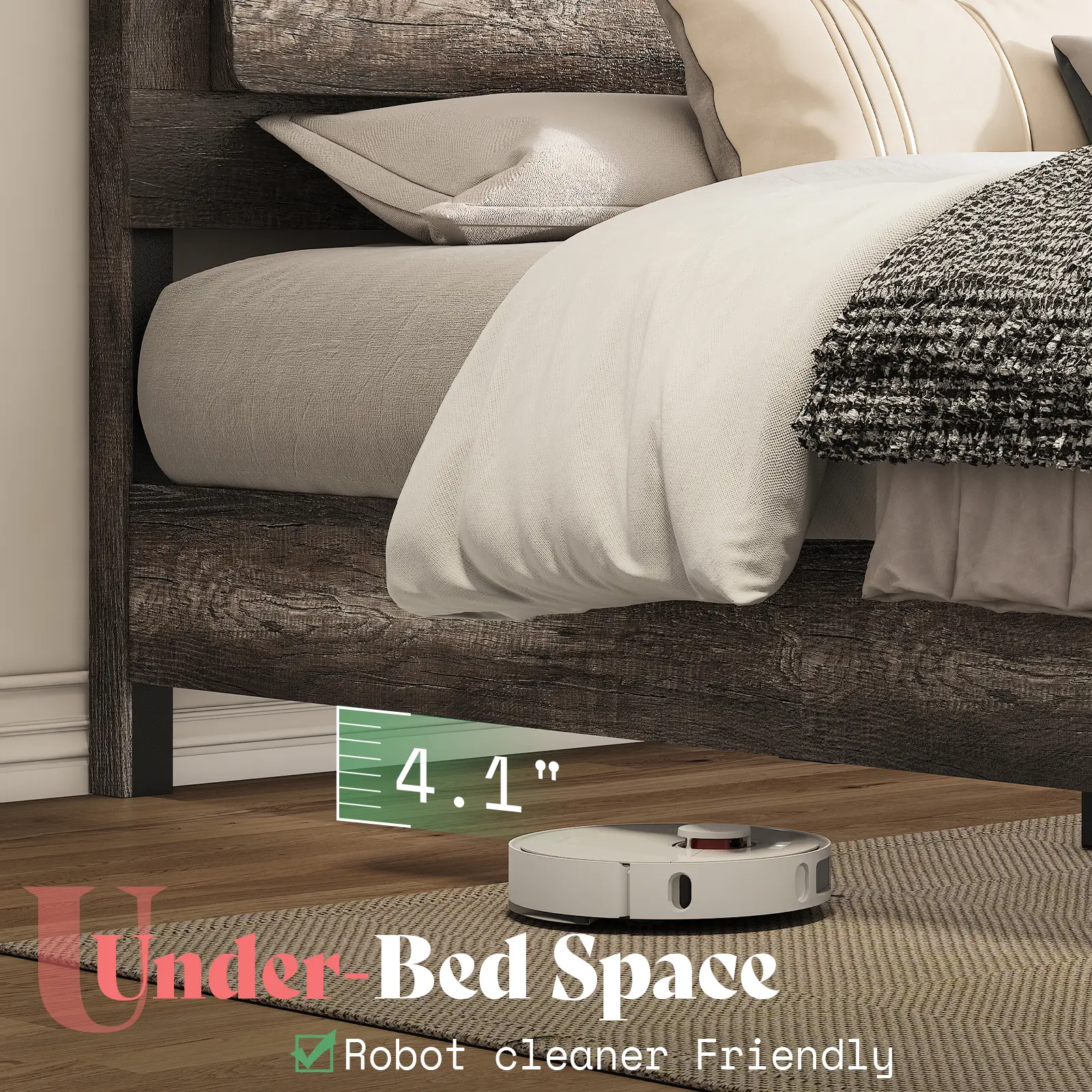 ·Stable & Durable: Sturdy wood slats fully support the bed frame queen, ensuring solid mattress support. Hidden bed corner legs enhance durability & stability for long-lasting use.