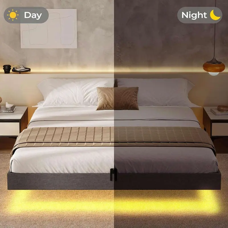 Sikaic Floating Bed Frame Linen Upholstered Platform With LED Lights Underbed Storage Space Dark Grey Angersbed Modern Headboard Unique Bedroom FurnitureSikaic Floating Bed Frame Linen Upholstered Platform With LED Lights Underbed Storage Space Dark Grey Angersbed Modern Headboard Unique Bedroom FurnitureSikaic Floating Bed Frame Linen Upholstered Platform With LED Lights Underbed Storage Space Dark Grey Angersbed Modern Headboard Unique Bedroom Furniture