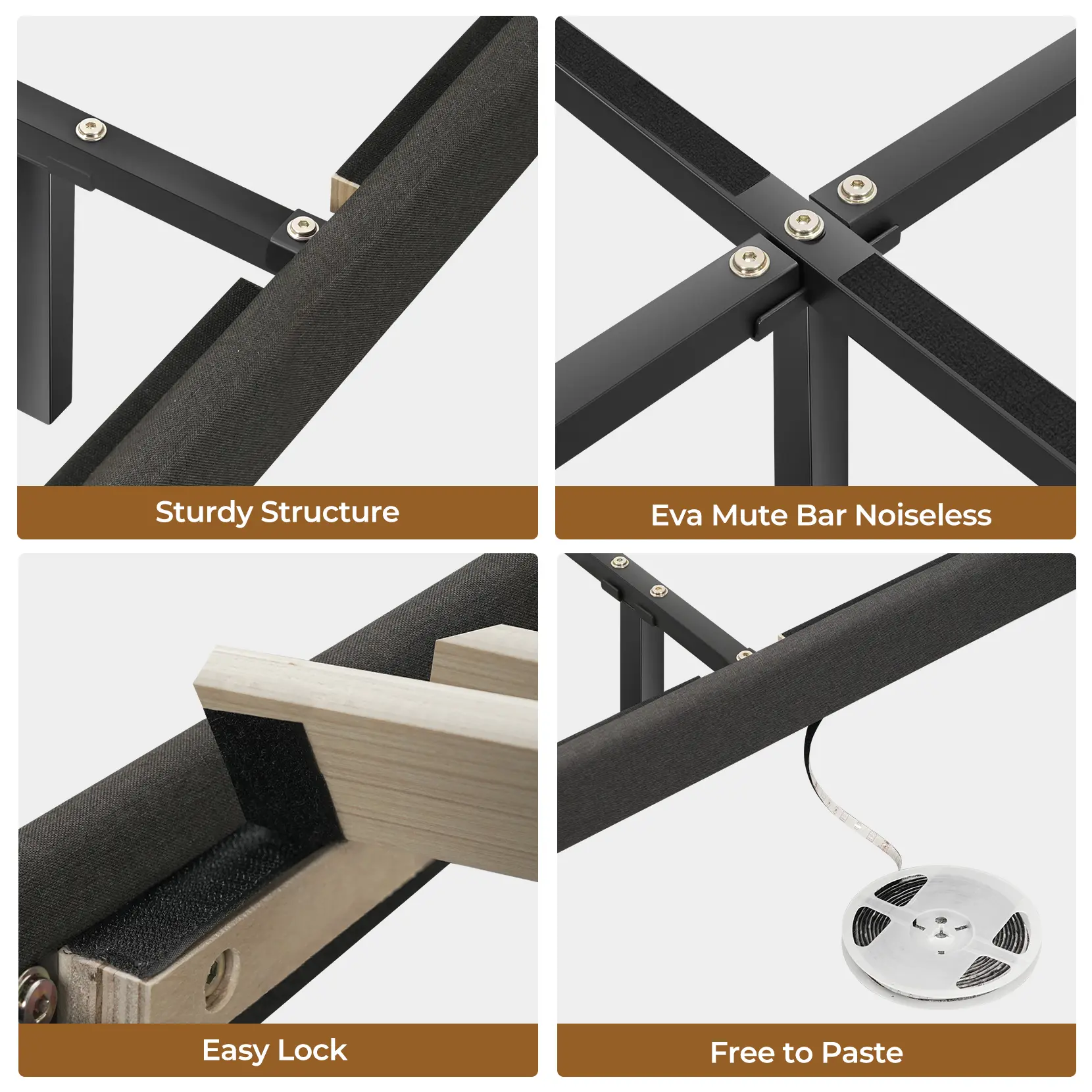 ·【Sturdy, Stable&Durable】our bed frame's Durable heavy metal frame and tightly arranged solid wood slats can provide strong support up to 800 lbs, 12 solid wood slats form 9 support points, more stable, durable and safer than normal bed frames. In addition, with the EVA Silent Bars not only avoid the noise but also prevent the mattress from sliding.