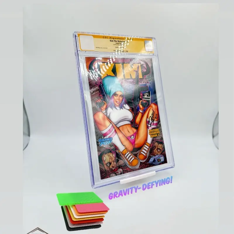 Custom-Built, FLOATING Stand! Designed with edgy corners, durable and a unique, perfectly balanced structure, this 3D-printed design creates the illusion of your graded comic floating, offering a one-of-a-kind viewing angle. Highlight your collection and the impressive capabilities of 3D printing with this sleek, futuristic, and minimalist design!