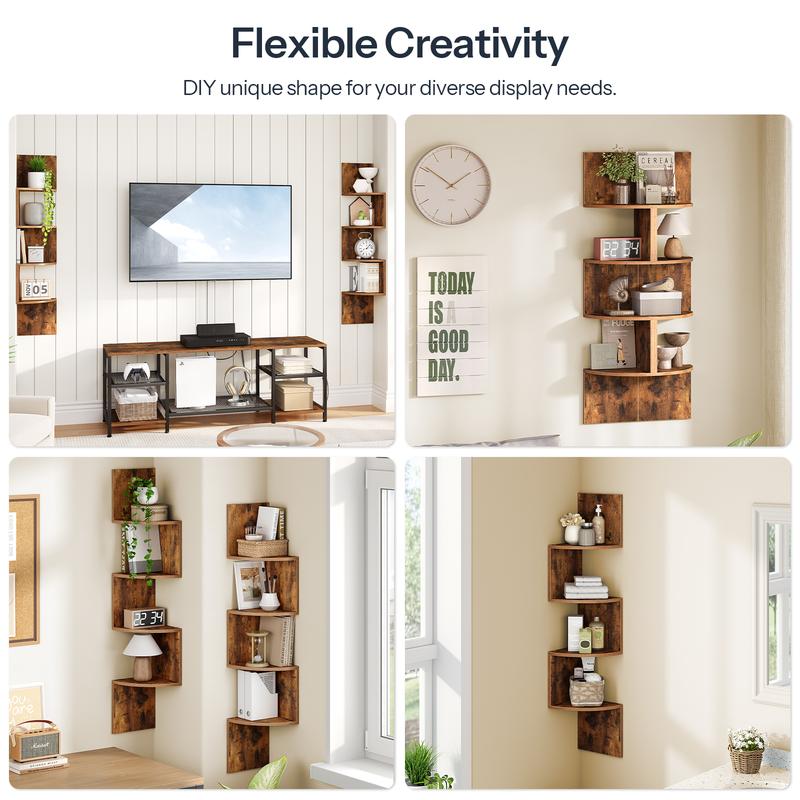 This 2-piece corner shelf set for wall offers flexibility to suit your needs.