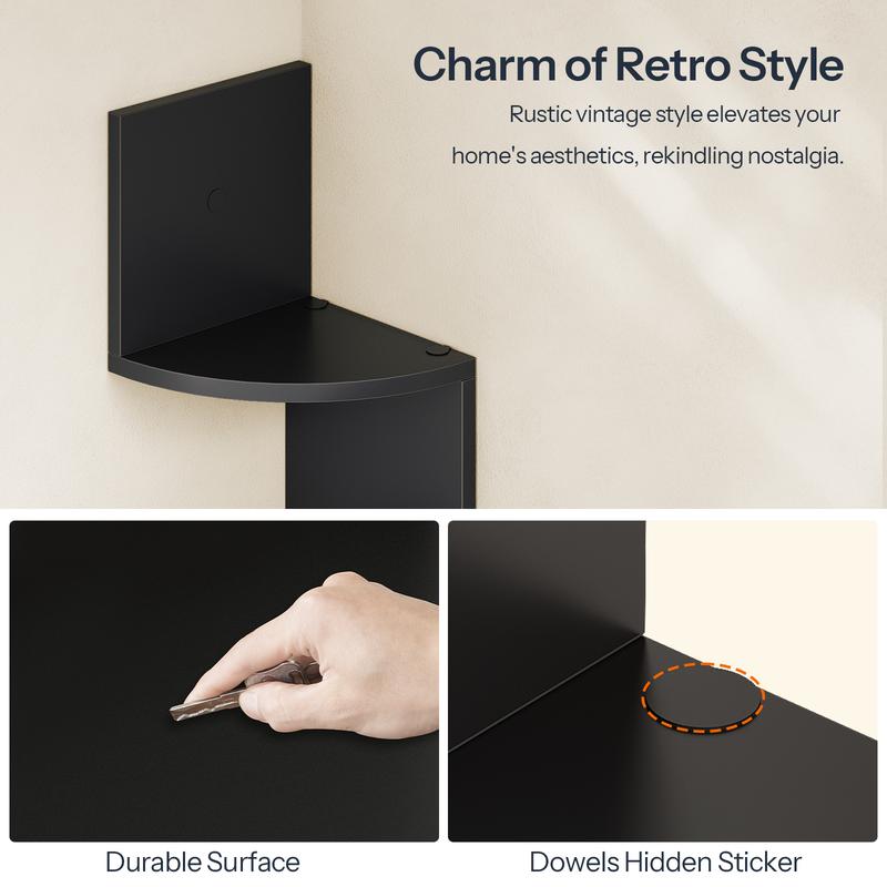This set of 2 corner wall shelvesis your savior! Its clever design maximizes wall space with 4-tier storage shelves, each spaced 7.9" apart, providing the perfect spots to neatly organize books, photos or decorative items.