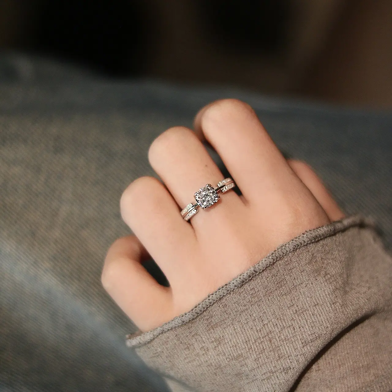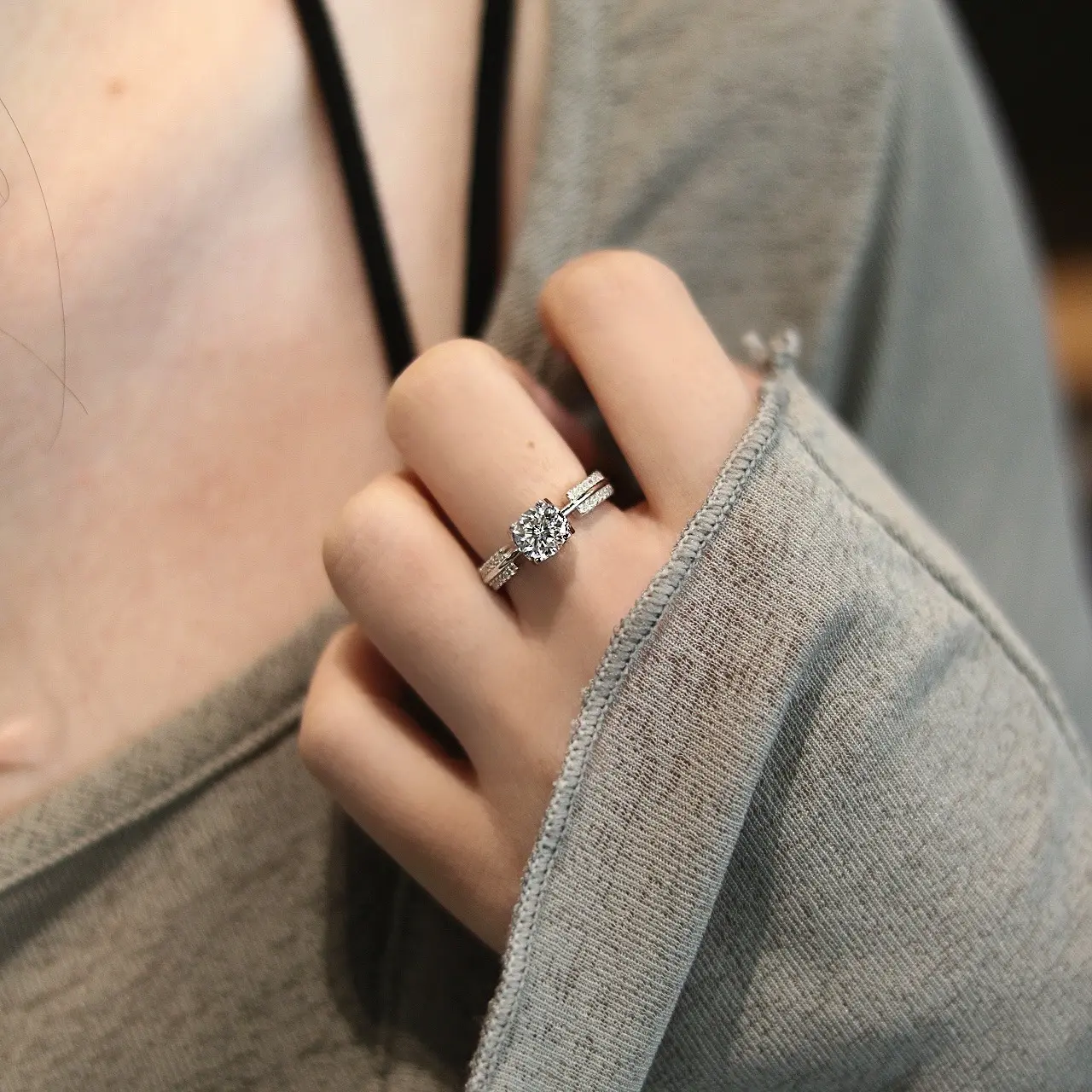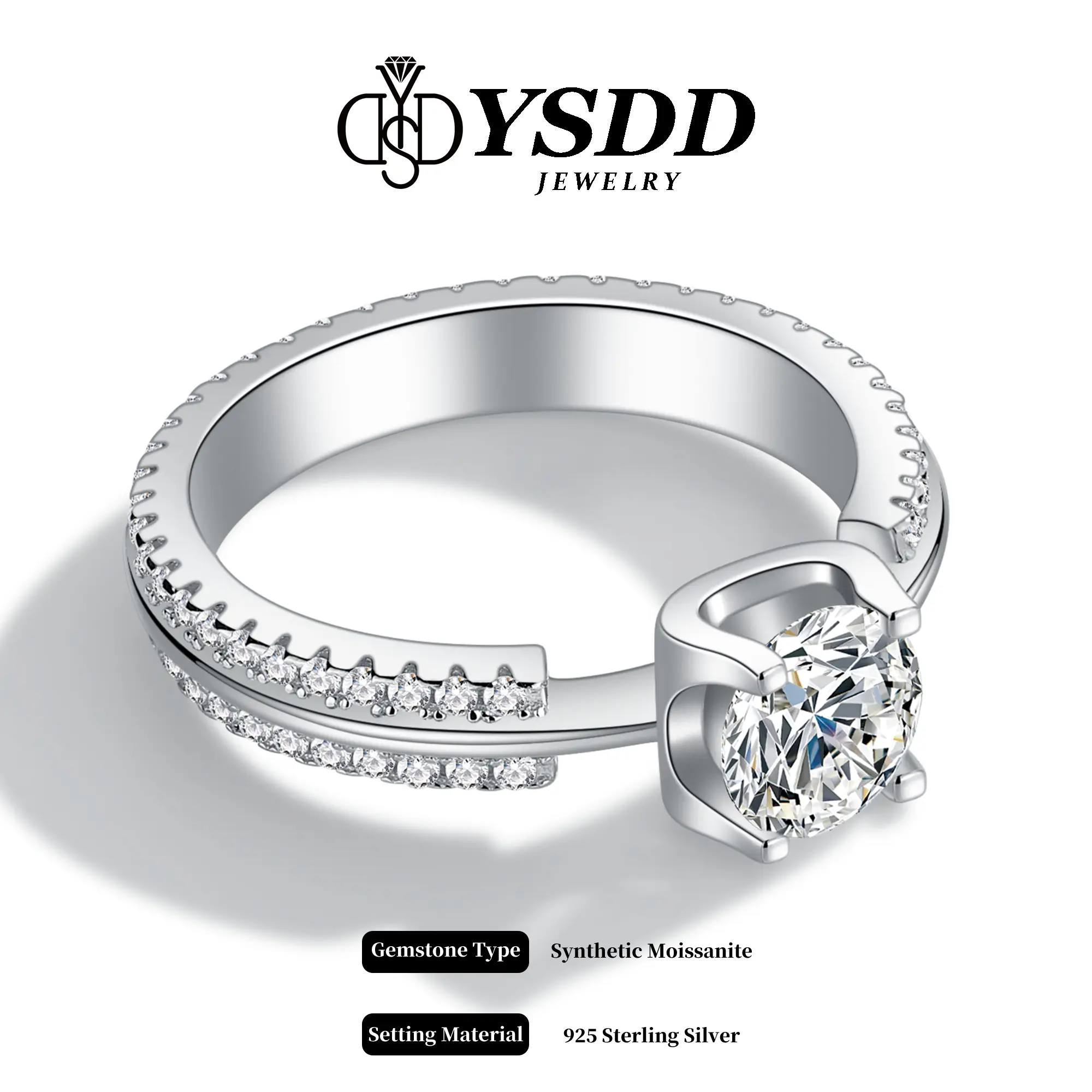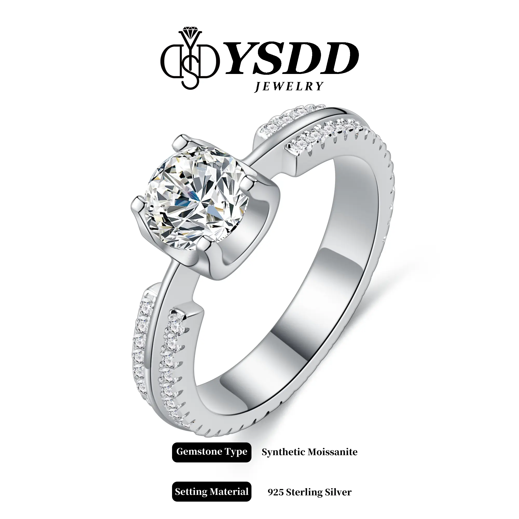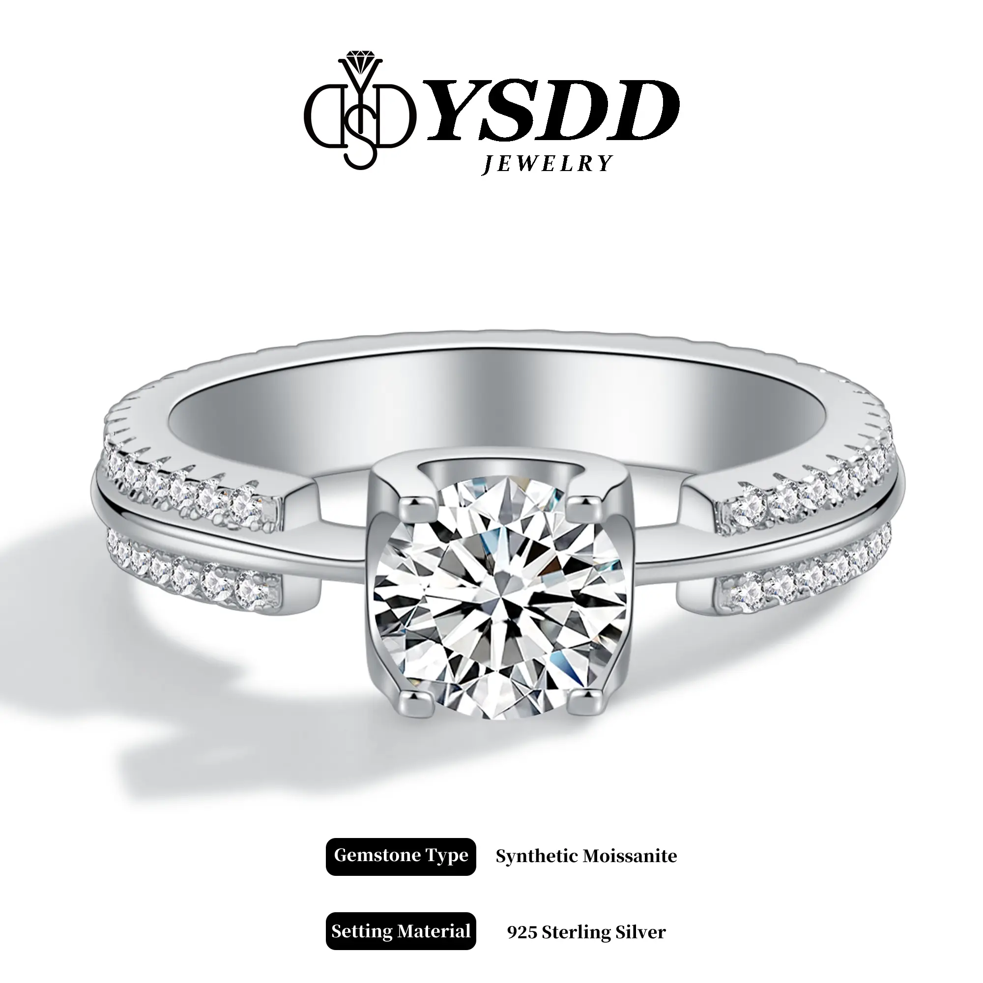 ✨ Center Stone: 1ct Synthetic Moissanite, VVS1-2 clarity, D/E grade. Classic 4-prong setting ensures a secure and elegant hold. 🌟