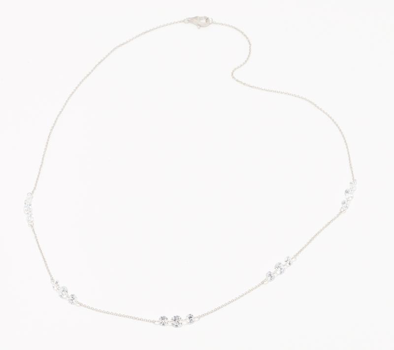 Skip the plain chain and traditional pendants. This Diamonique x Jennifer Miller floating necklace creates a captivating silhouette by meticulously arranging cubic zirconia Diamonique simulated diamonds along a cable chain in an unexpected way.