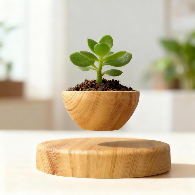 Does not float. Powerful magnet seems to be installed upside down? Pot is tiny and not as pictures