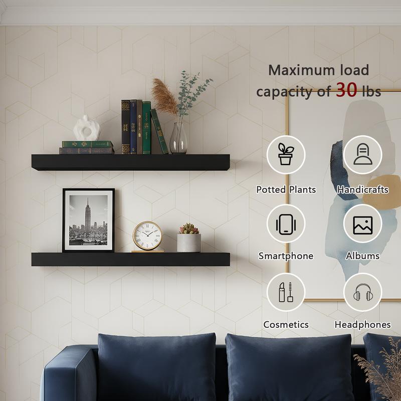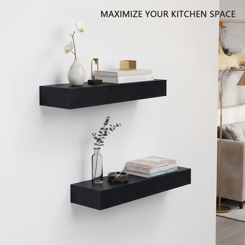 Hang these rectangular wall shelves in the bedroom, display bathroom accents, or place them below a mirror in the entryway. Showcase family photos in a hallway, highlight trophies and accolades near the fireplace, add kitchen decor, or store spices and jars. They also serve as storage in laundry rooms, above toilets, or as corner bookshelves, living room wall decor, or office wall accents.