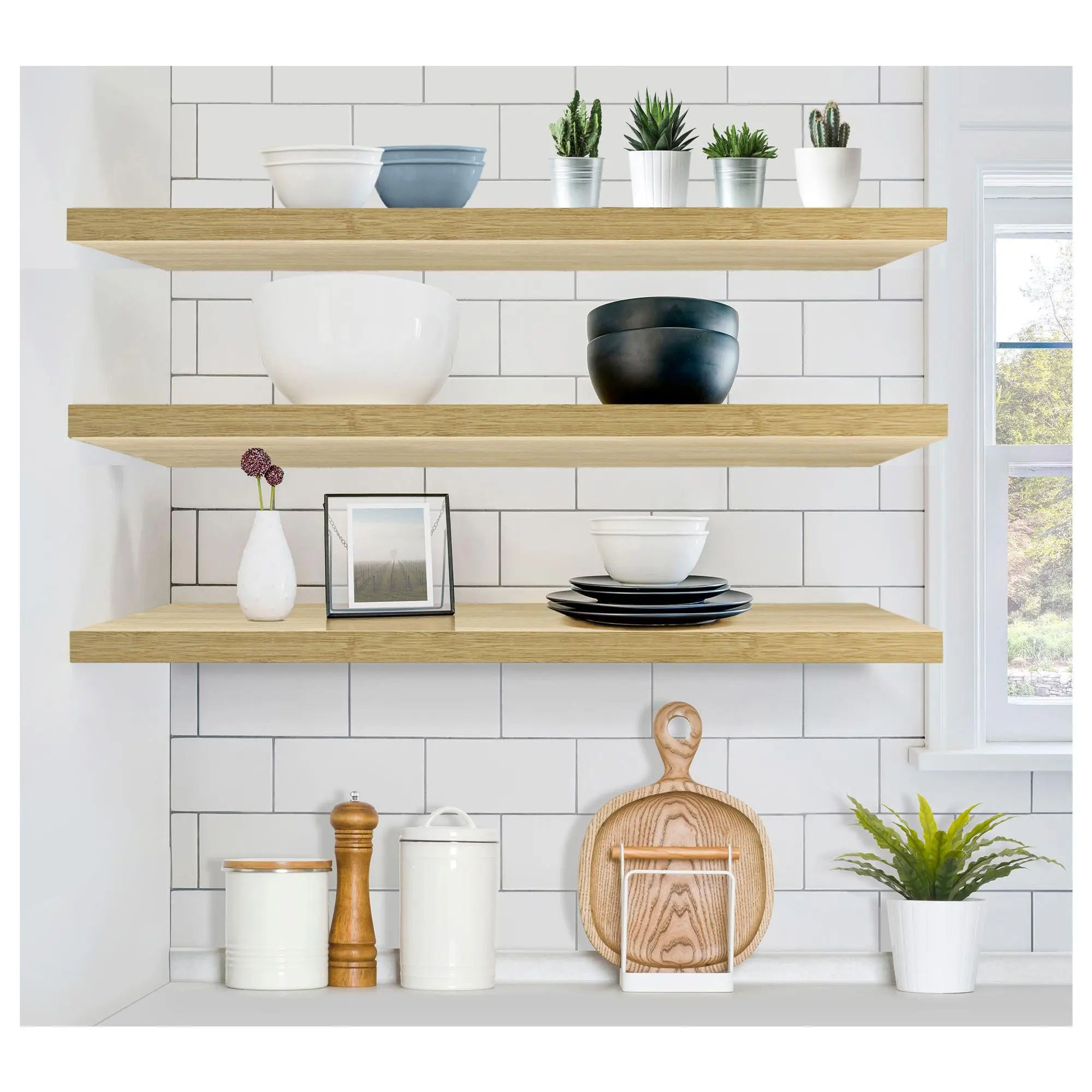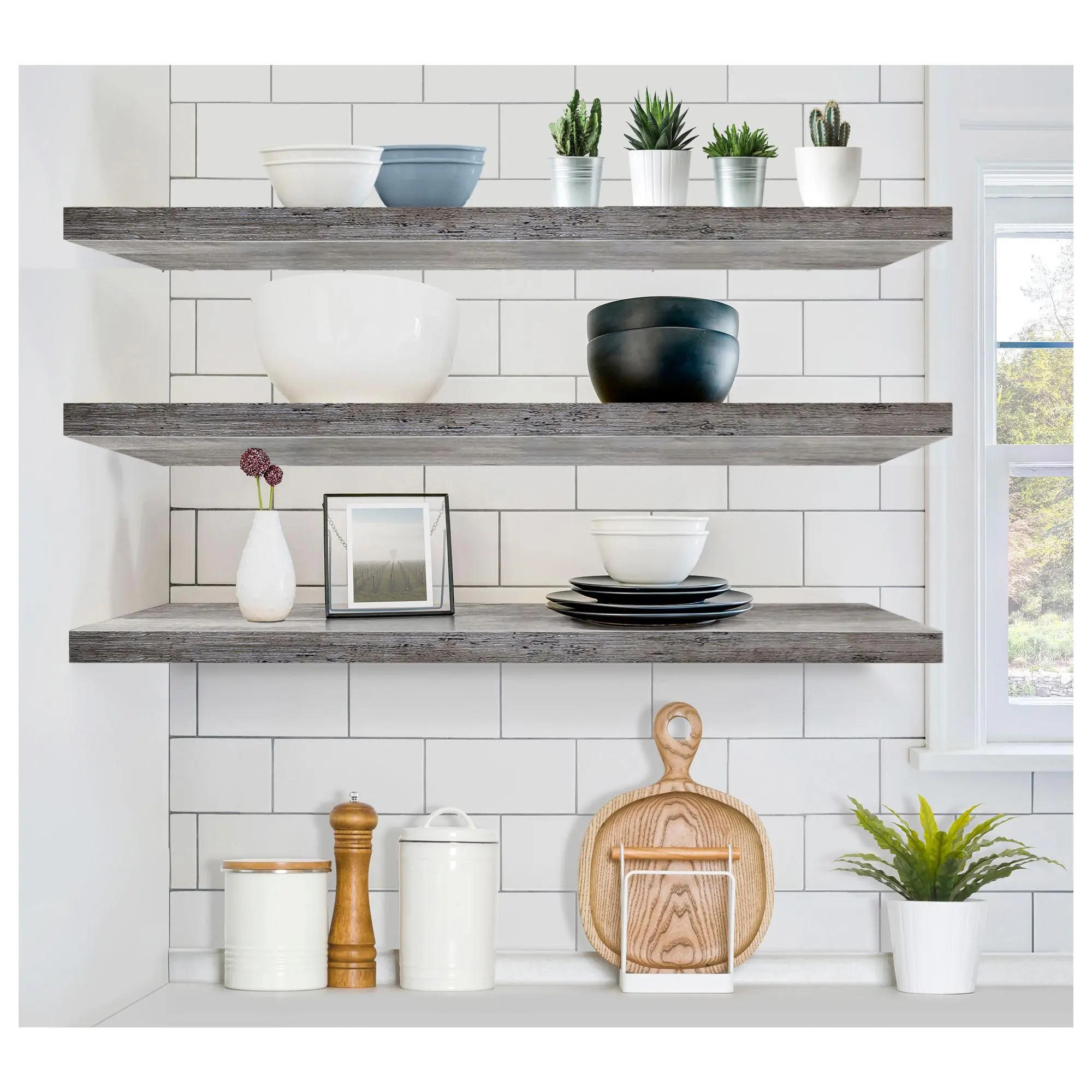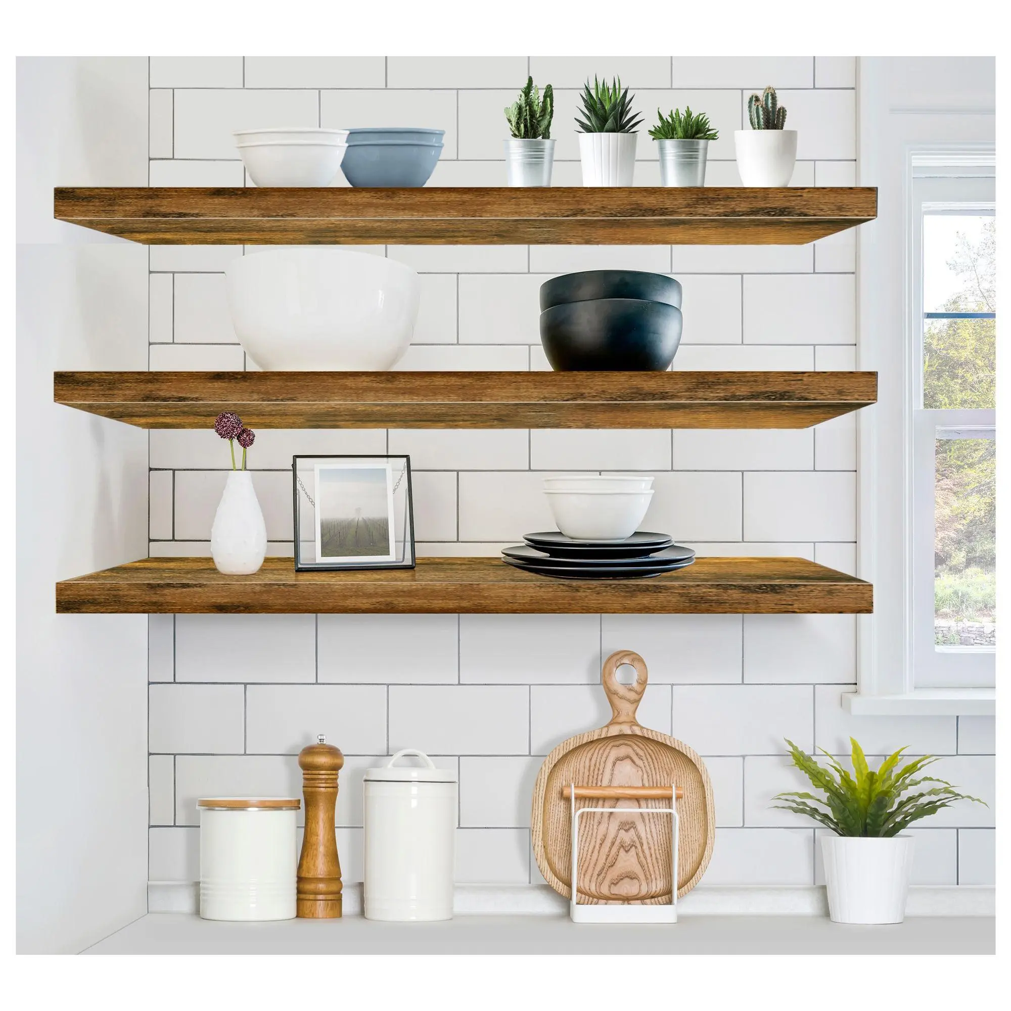 Add dimension and functionality to your home with these versatile floating shelves from Sorbus. Perfect for displaying decorative items, photos, or plants, they enhance any space with their charming yet functional design. These shelves are ideal for filling wall space in the living room, bedroom, bathroom, or kitchen. From Sorbus.