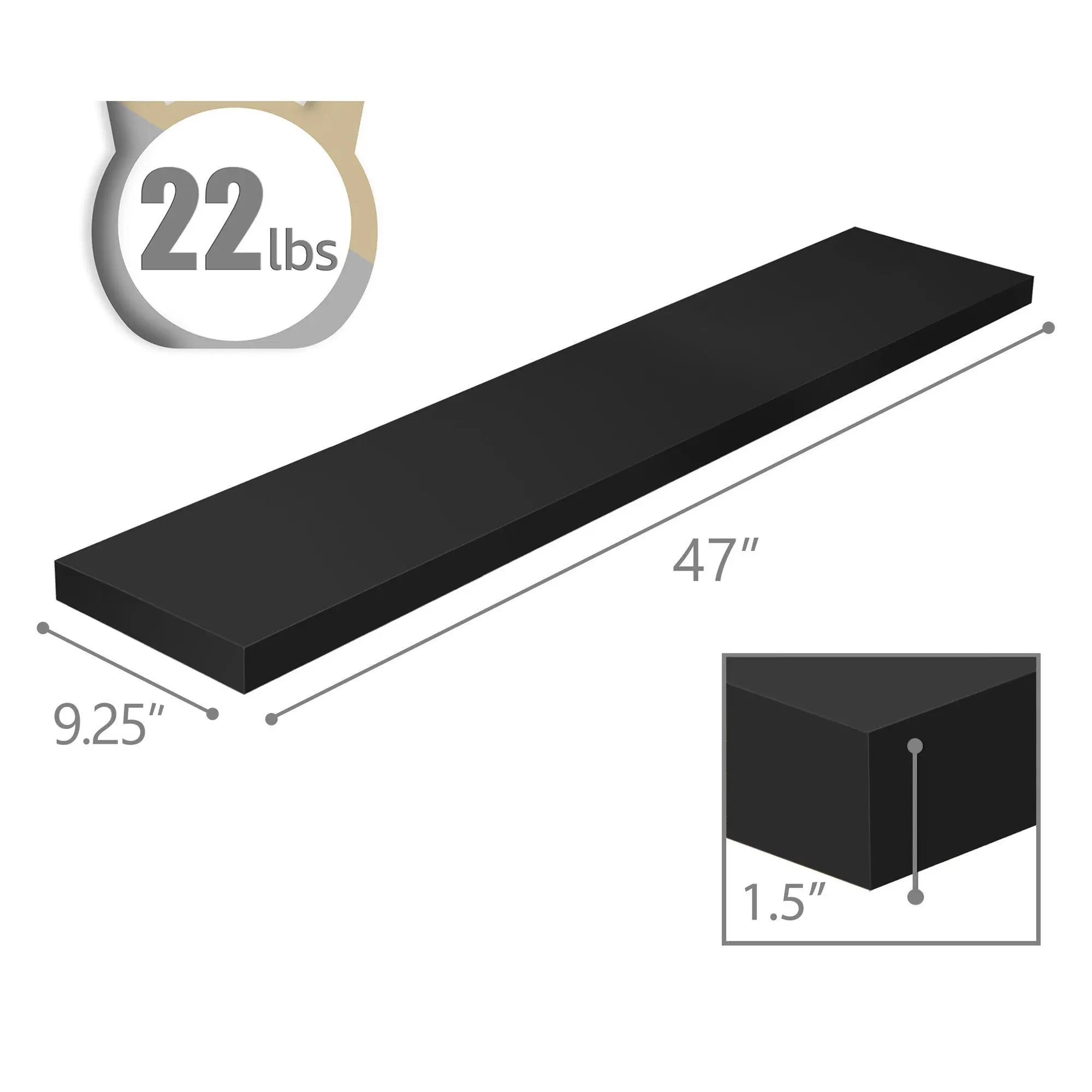 ·Measures approximately 9.25"L x 47"W x 1.5"H